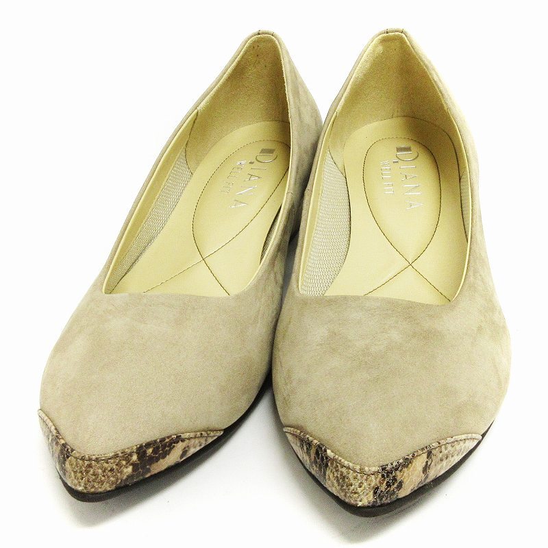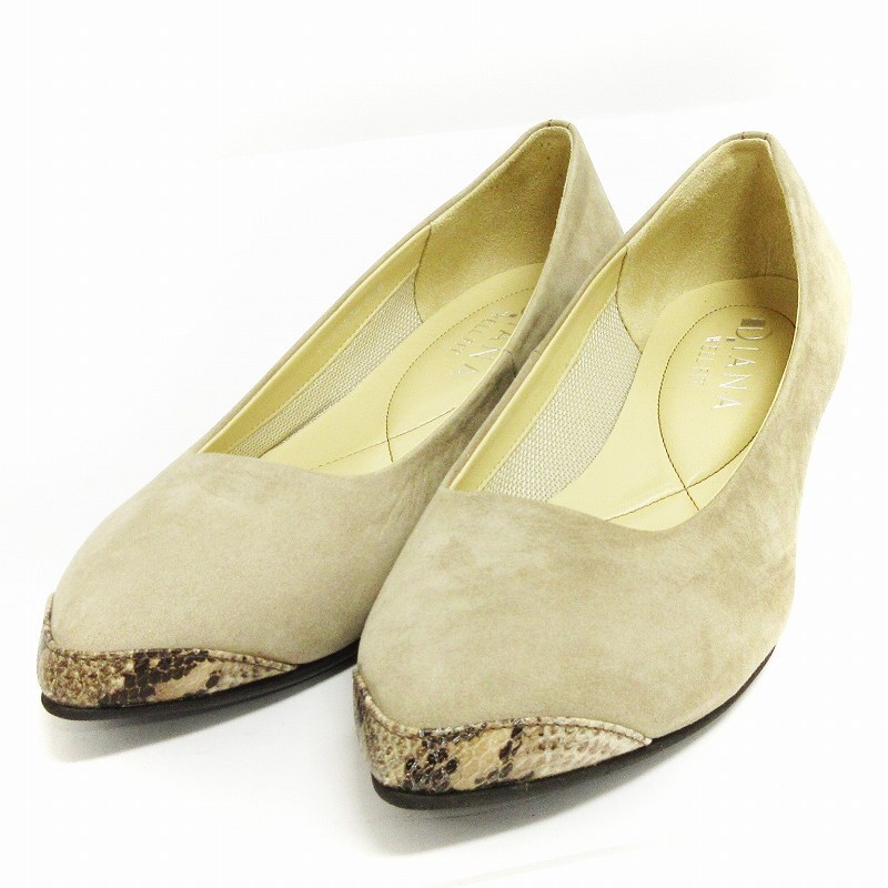 ダイアナ DIANA WELL FIT パンプス スエード チャンキーヒール アーモンドトゥ ベージュ 23.5cm 靴 レディース