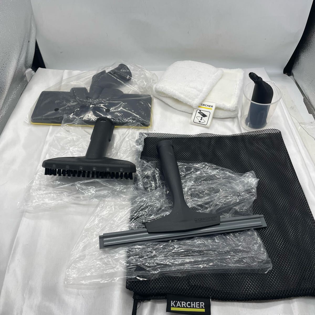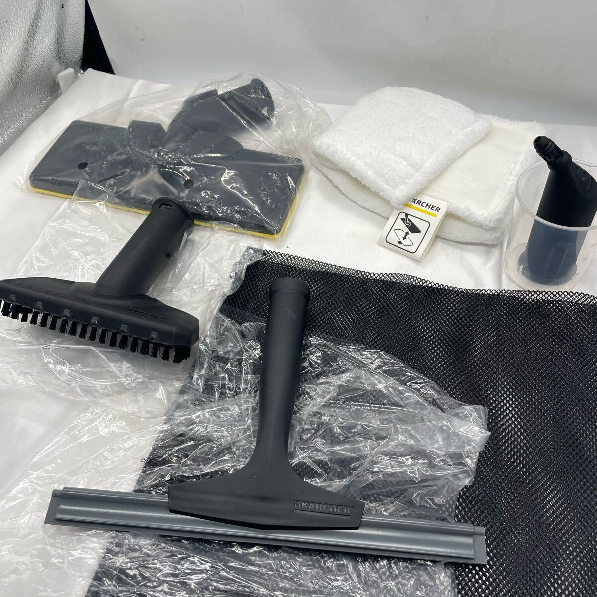・付属品も写真の通り多数そろっています(ノズル、ブラシ、スチームモップ、パッド、スクイージーなど)