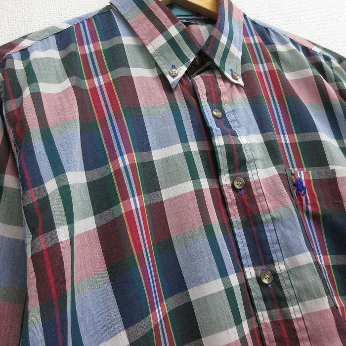 【商品名】 L★古着 長袖 シャツ メンズ 90年代 90s ボタンダウン 緑他 チェック