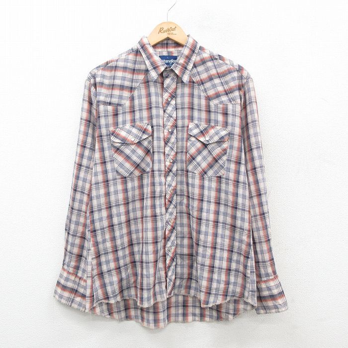 【商品名】 XL★古着 ラングラー 長袖 ウエスタン シャツ メンズ 90年代 90s ベージュ他 チェック