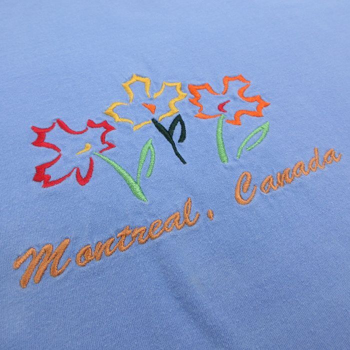 【商品名】 L★古着 半袖 ビンテージ Tシャツ メンズ 00年代 00s モントリオール カナダ 刺繍 コットン クルーネック 薄紺