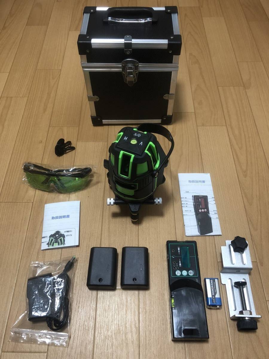 5ライン6点 グリーンレーザー墨出し器//墨出器/水平器/測定器/墨出し機/墨だし器/水準器/自動補正機能/ 高輝度 高精度/ 受光器付き