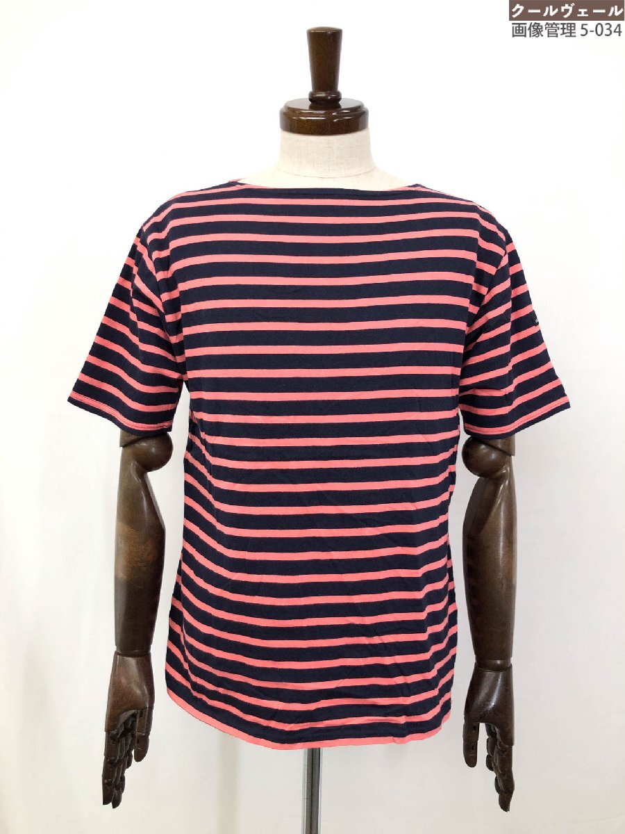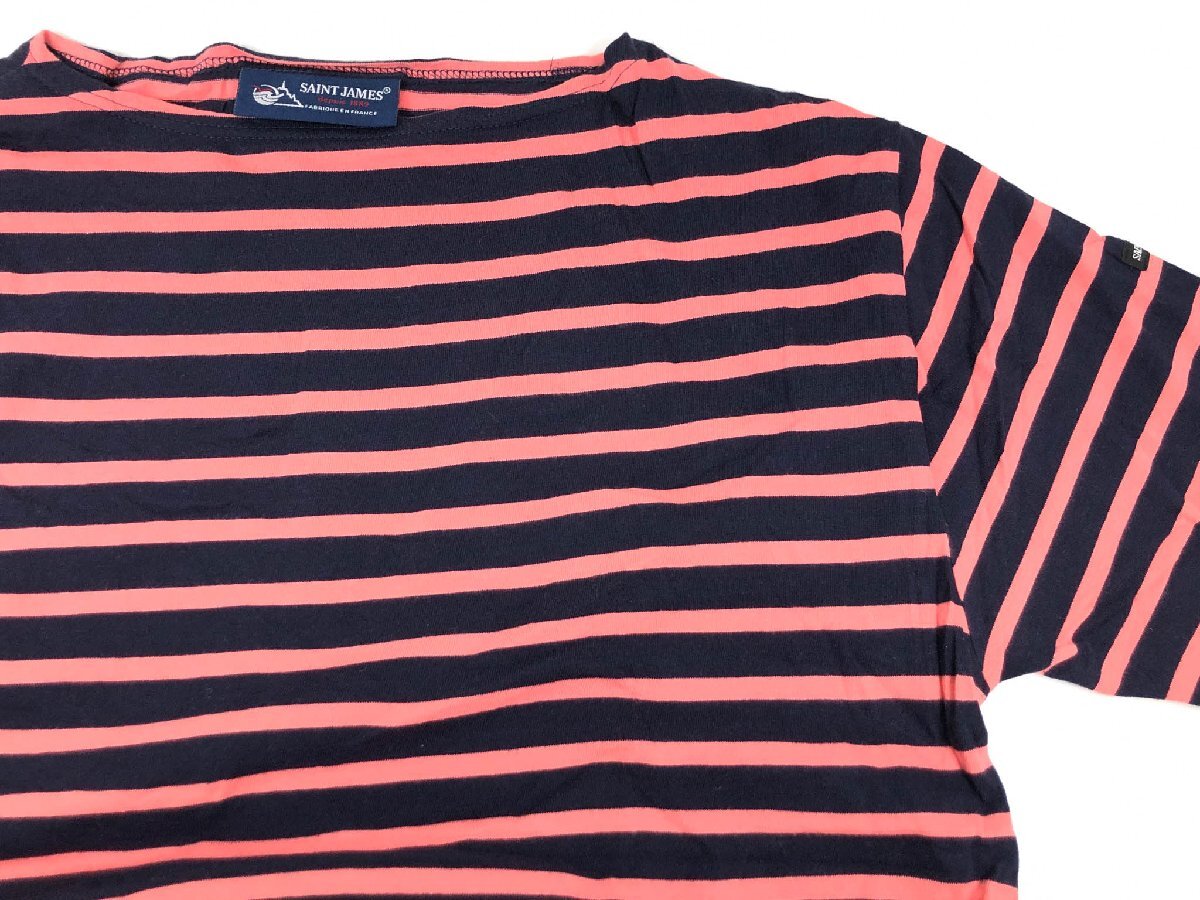 美品【SAINT JAMES セントジェームス】 綿100% ボートネック 半袖Tシャツ (メンズ) size5GPON 紺×ピンク ボーダー柄 仏製 ◇33MT6141◇