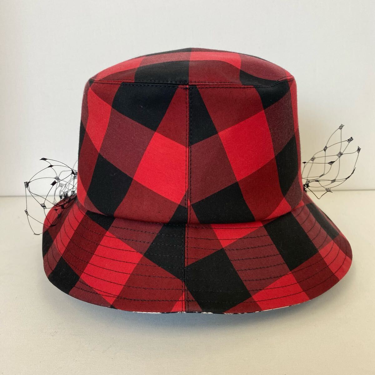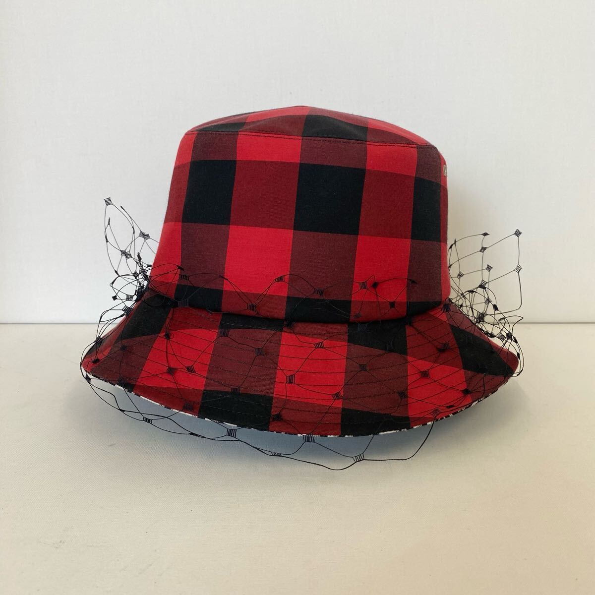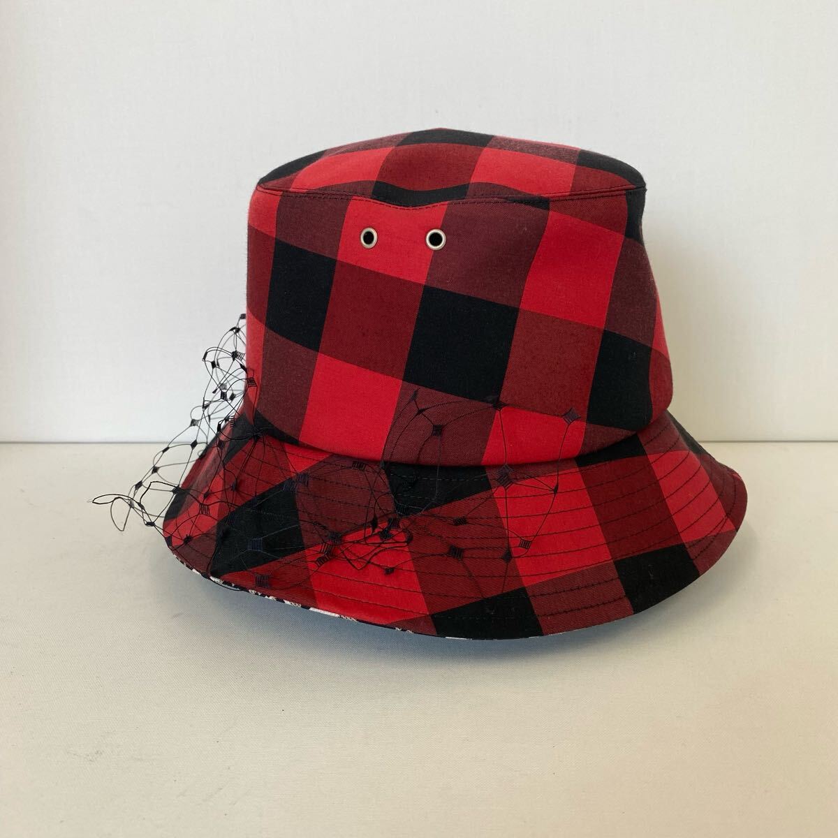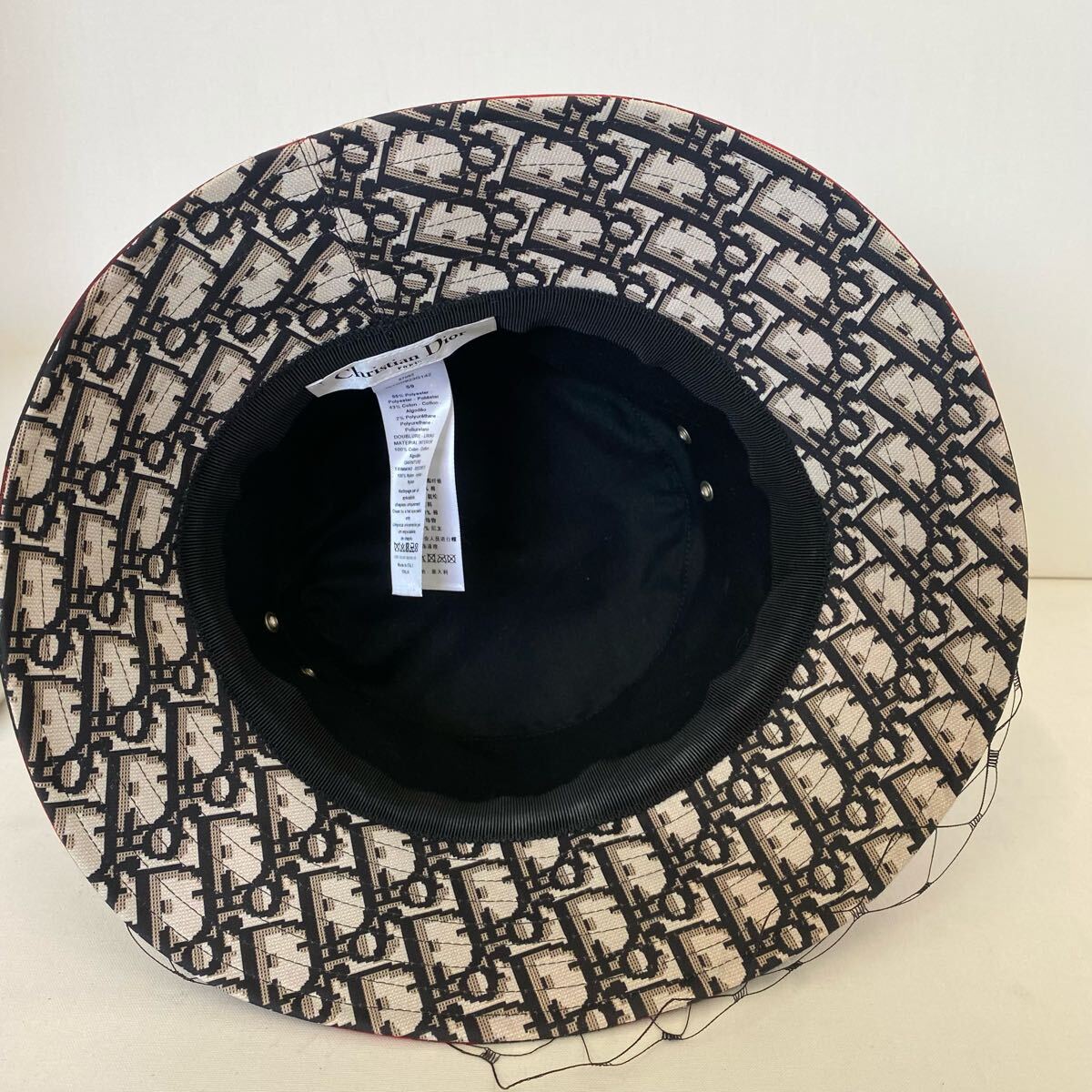 【Christian Dior】クリスチャンディオール ボブハット バケットハット 95TDD923G142 オブリーク チェック チュール付き ベール レッド 31