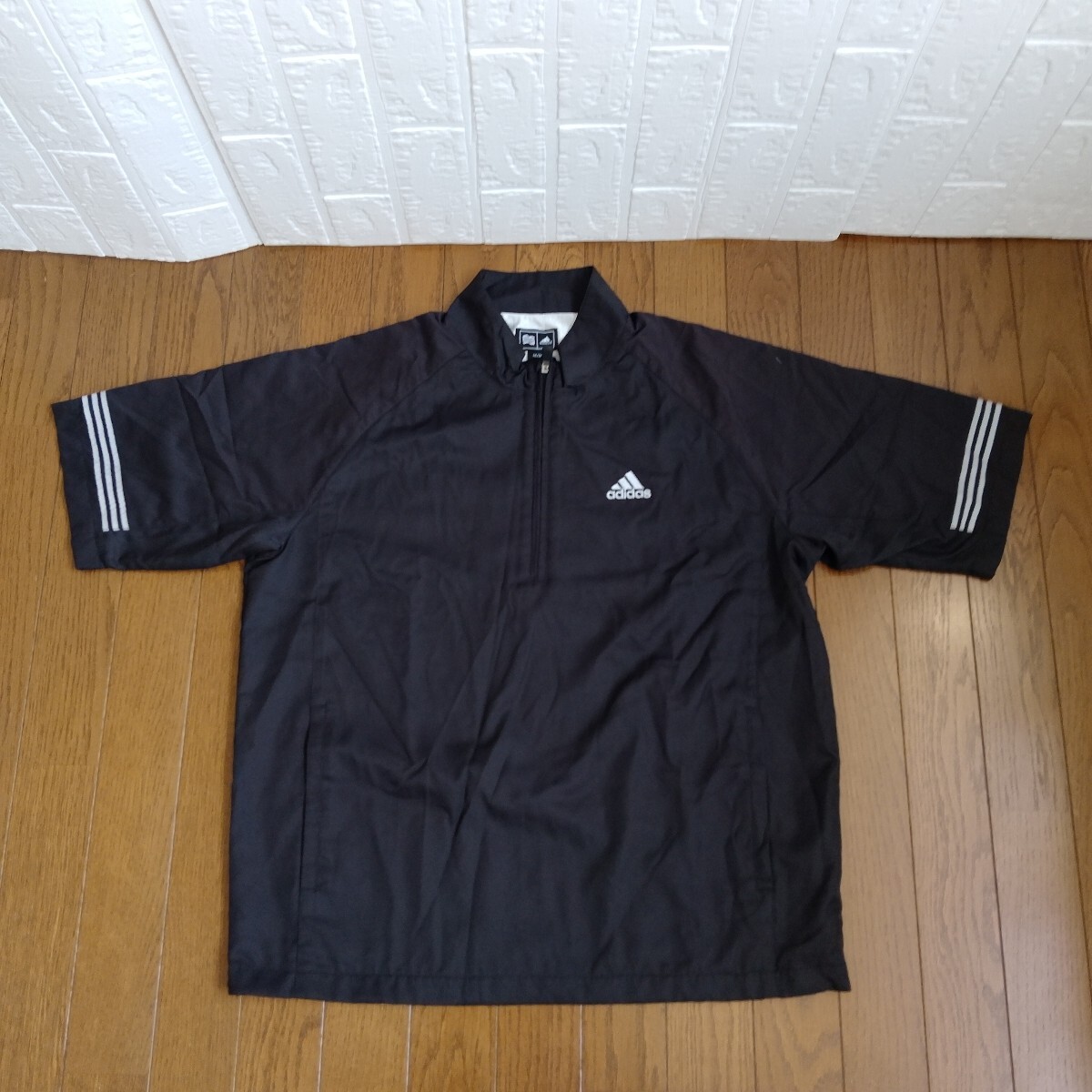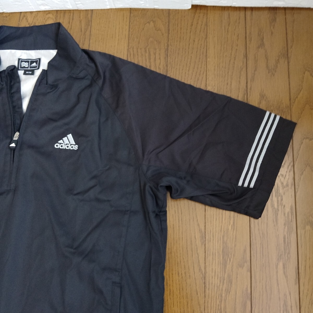 2065【中古】adidas golf アディダスゴルフ ゴルフウェア 半袖ハーフジップ ウインドブレーカー メンズサイズ M 黒