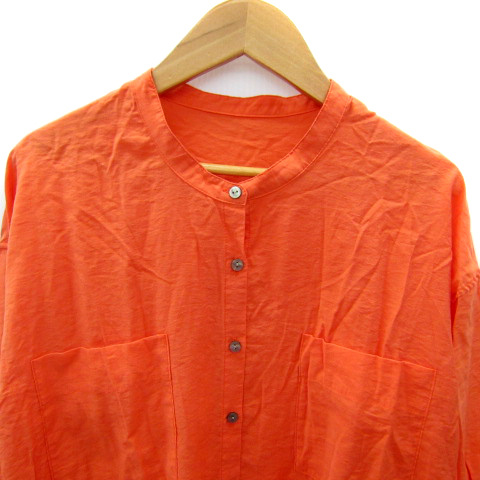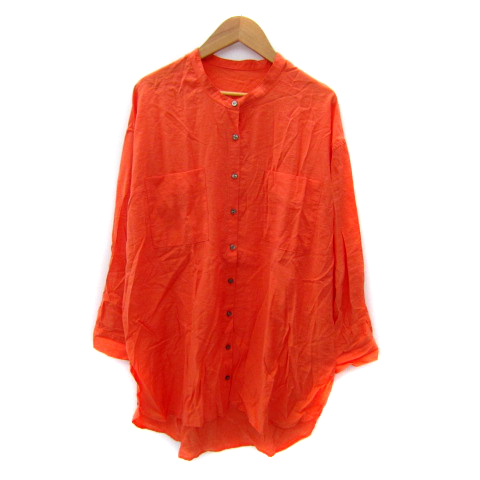 ロペピクニック ROPE Picnic ブラウス シャツ ロング丈 長袖 バンドカラー 無地 38 M オレンジ /SY49 レディース
