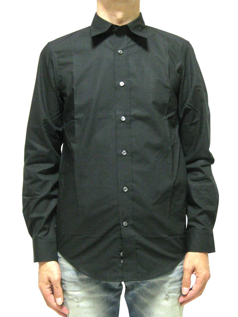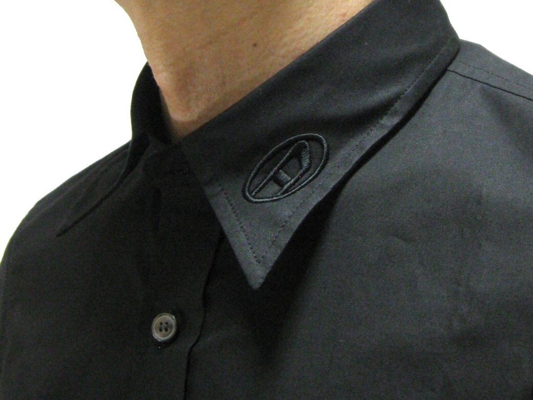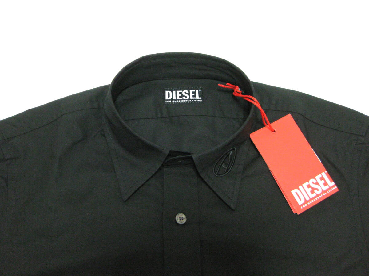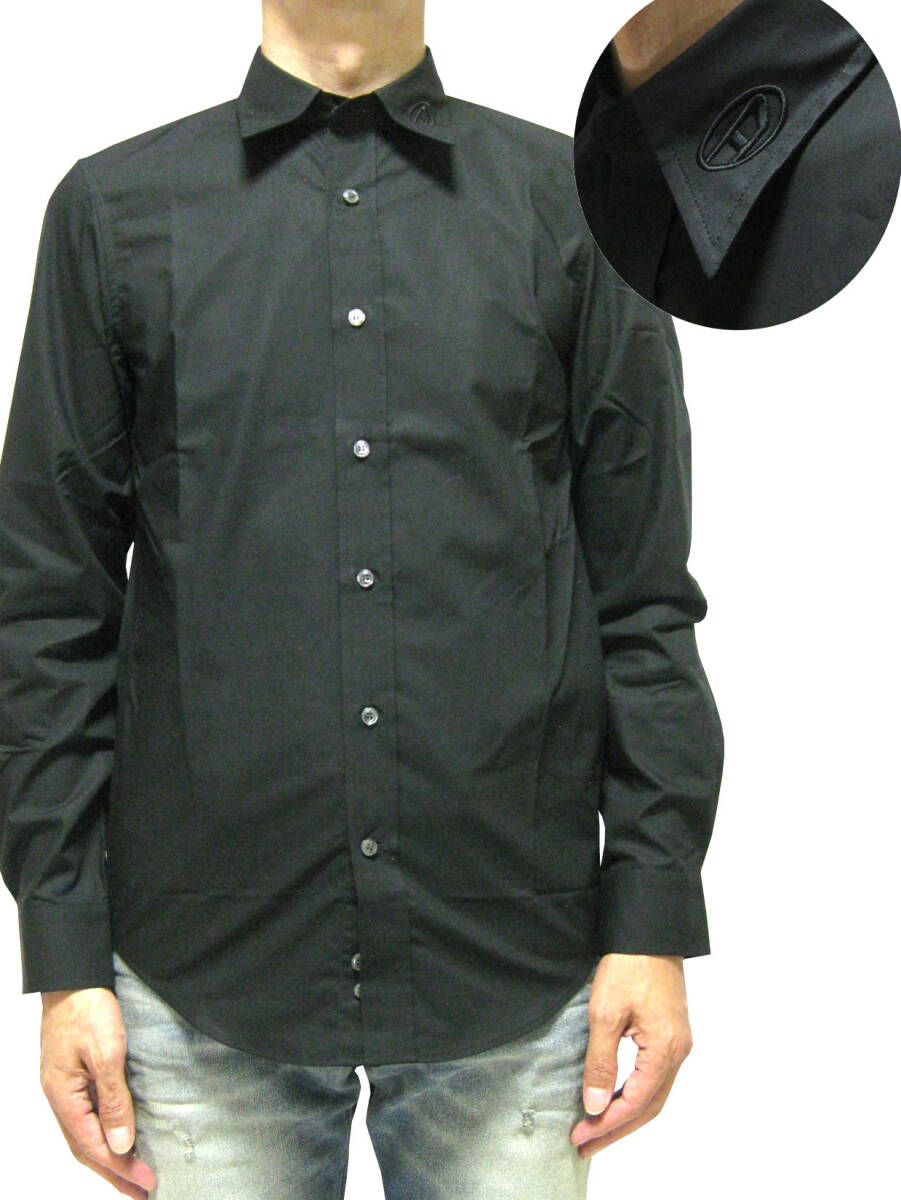 新品 直輸入 DIESEL ディーゼル オーバルD 襟ロゴ スリムフィット ドレスシャツ S-BEN-CL-A ブラック 50サイズ ポプリンコットン