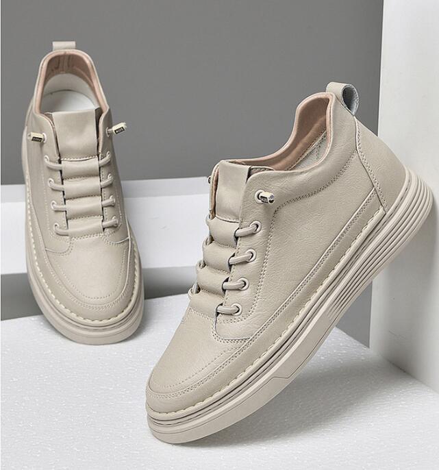 新入荷新品上質 スニーカー スリッポン メンズ シークレットシューズ 身長アップ ドライビングシューズ 紳士靴 ベージュ 25.5cm