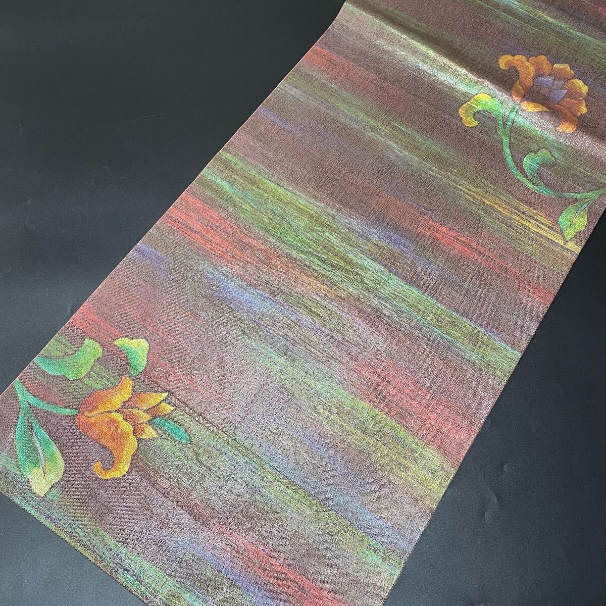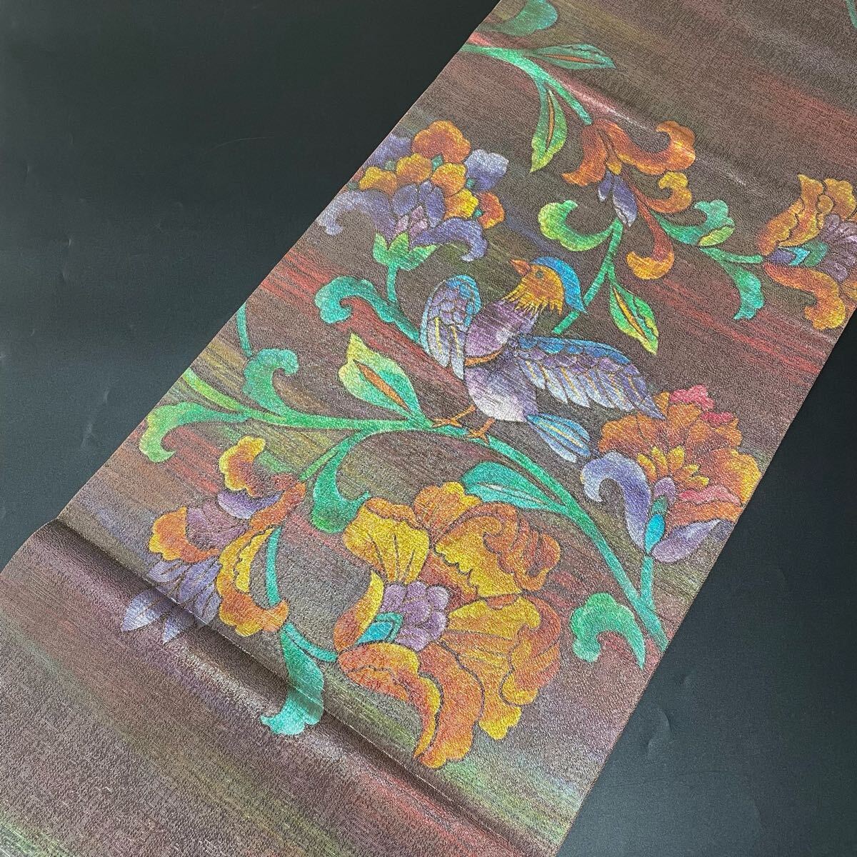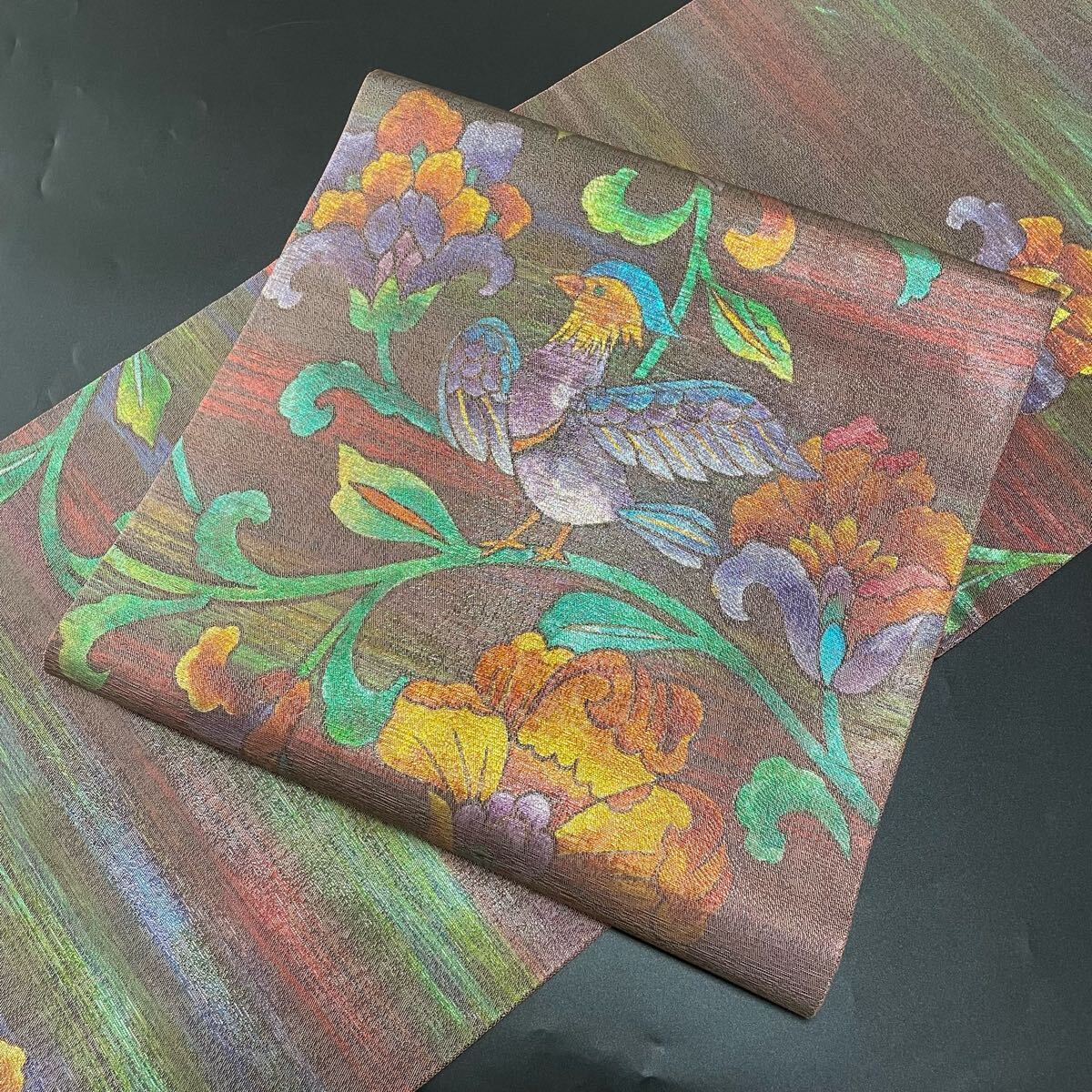 ・花唐草模様と鳥がとても素敵な六通袋帯です。 ・締め跡は少しあります。 ・特記する汚れやシミもなく、状態がとても良いです。 ・すぐにでも着用していただますので、おすすめの帯となっております。 ・お安く出品致しますので、是非この機会にいかがでしょうか。 |