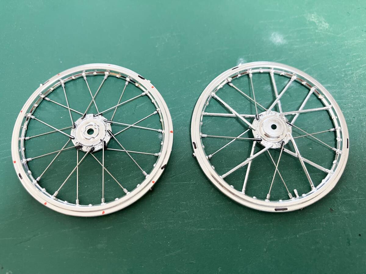 プラモデルのスポークの細さはプラスチック射出成型の限界上、どうしても太くなってしまっています