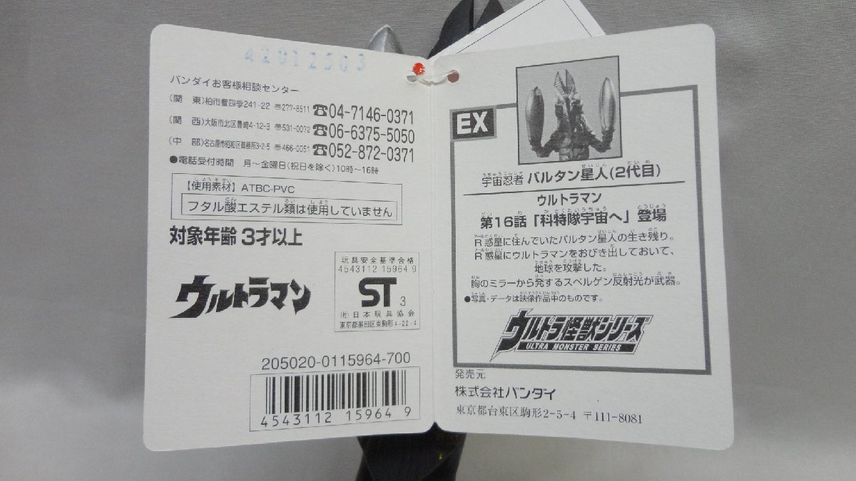ウルトラ怪獣 EX ソフビ バルタン星人 2代目 タグ付 ウルトラマン