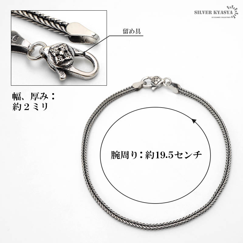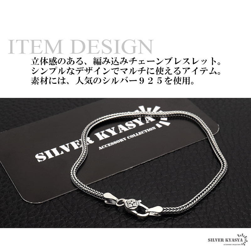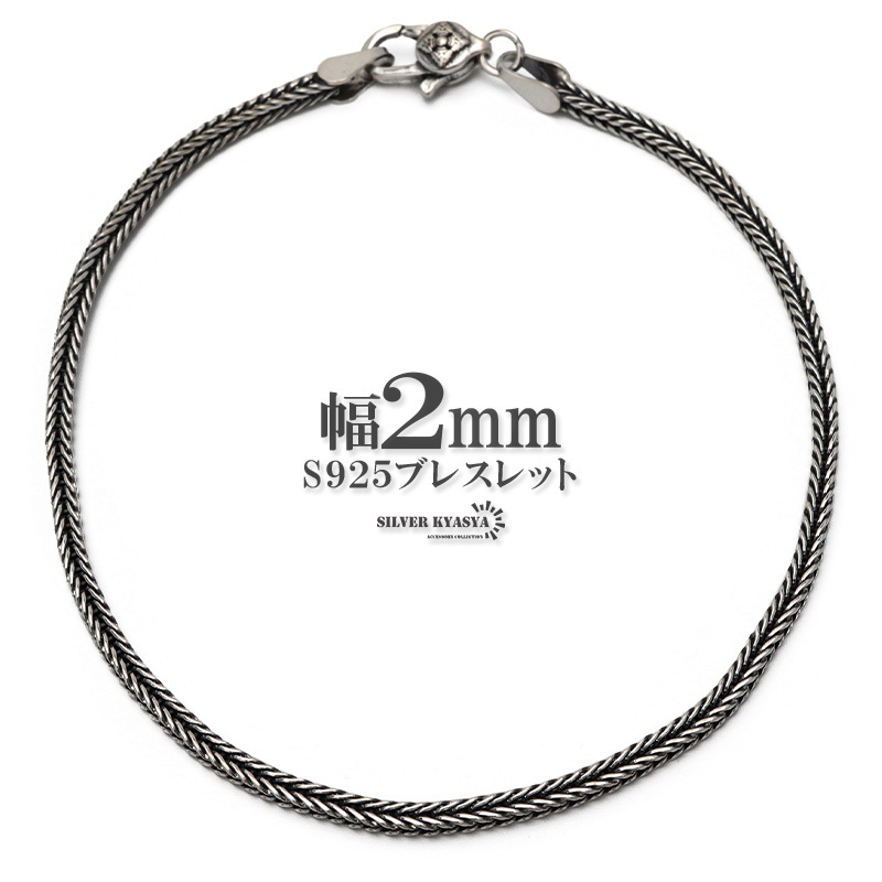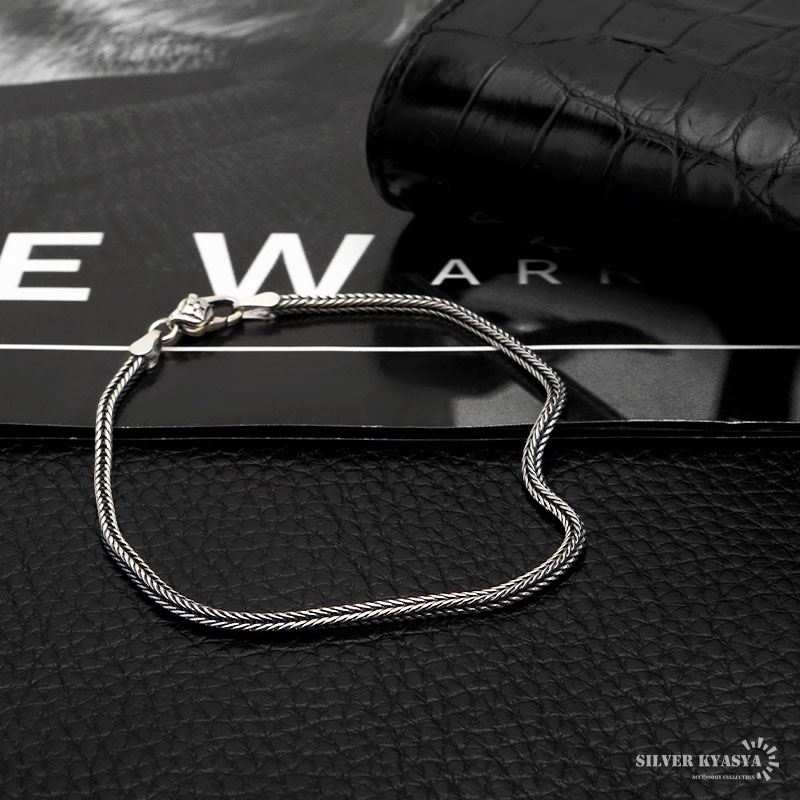 シルバー925 編み込みブレスレット 幅2mm メンズブレスレット チェーンブレスレット スクエア アンティーク 細身 シルバー