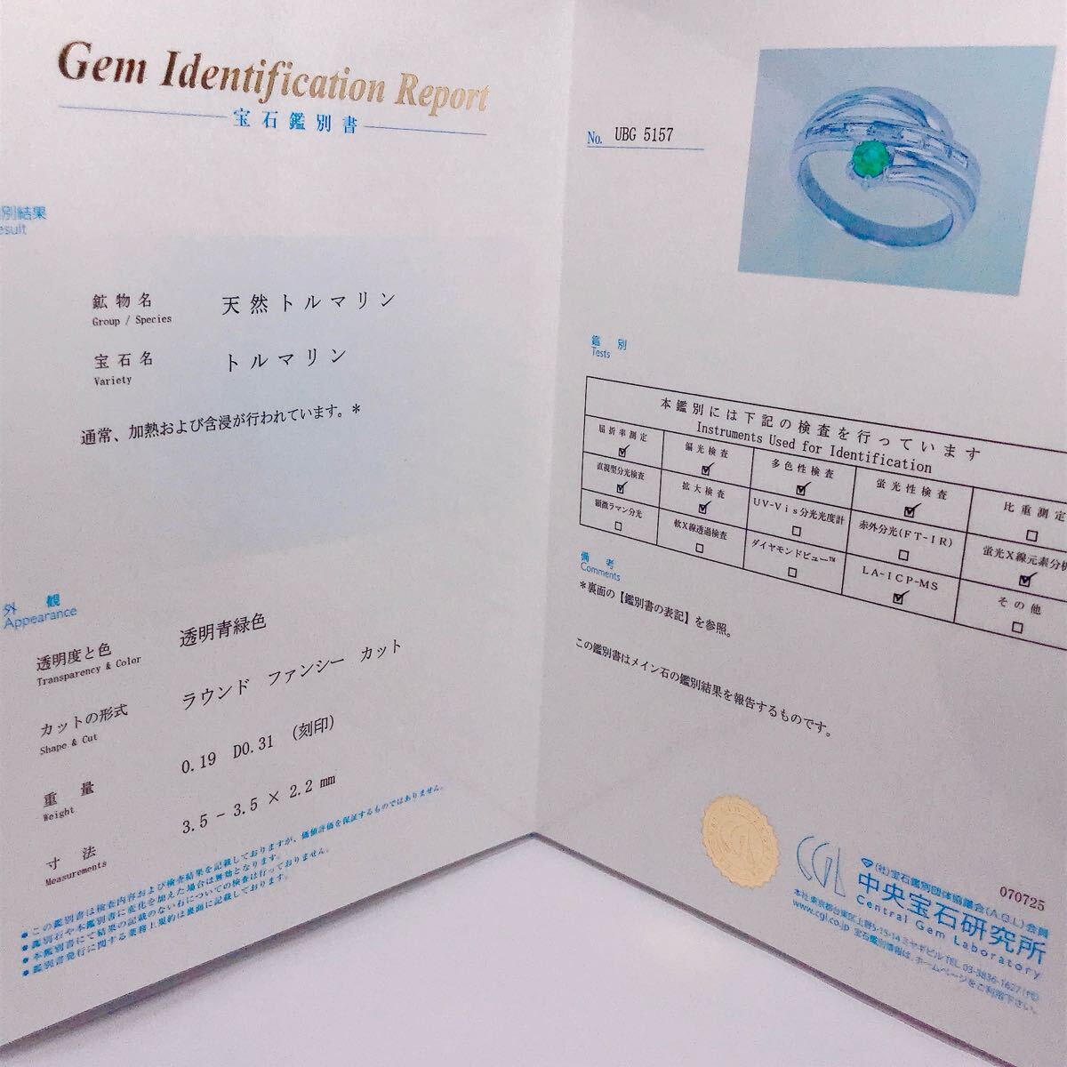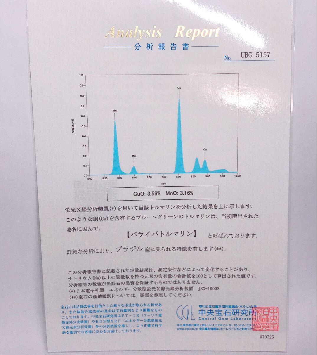 【付属品】鑑別書、産地分析報告書(中央宝石研究所)