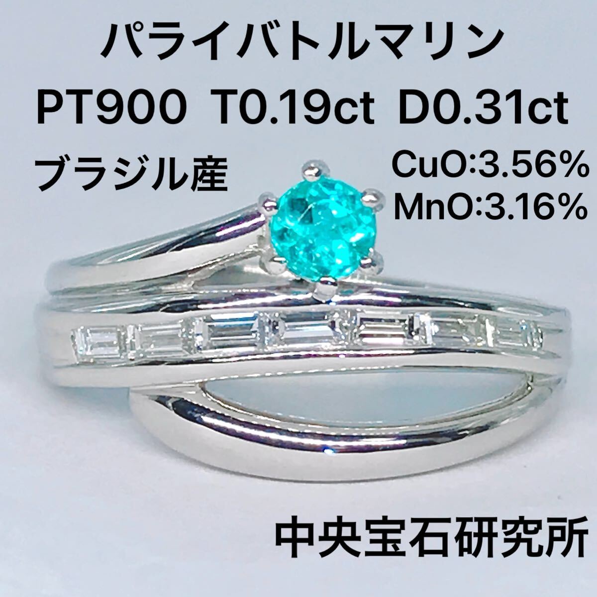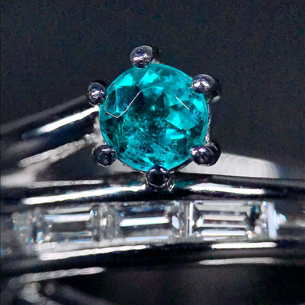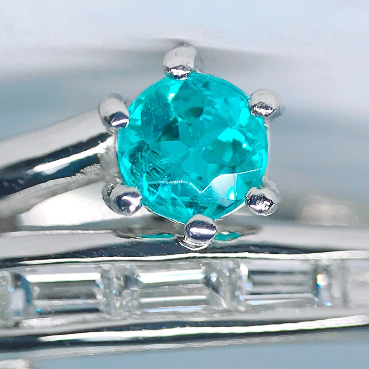 数ある宝石の中でも絶大な人気と価値を誇るネオンブルーが非常に美しいパライバトルマリンのリングです。こちらはパライバトルマリンの中でも非常に価値の高いブラジル産となっており、内包物も少なく透明感・明度・彩度全てにおいて上質な石です。分析表の数値を見て分かる方、本物のパライバトルマリンをお探しの方向けのお品物です。