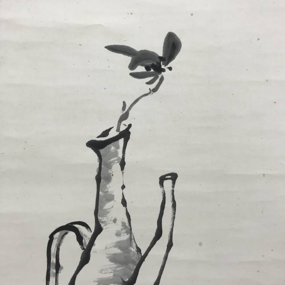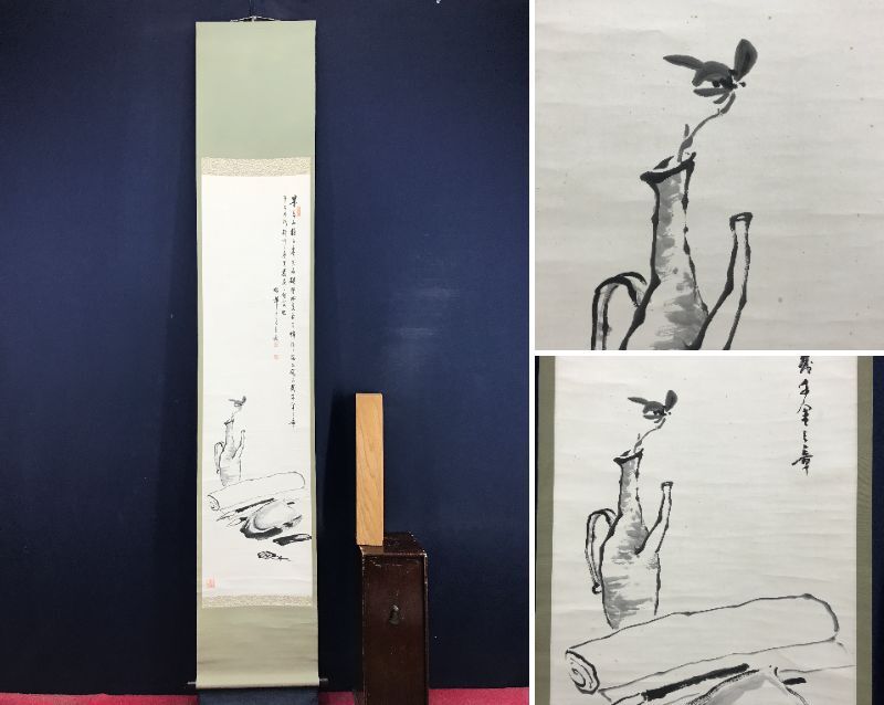 真作/黒部拈華/書道具画賛/花瓶花/風月画/掛軸☆宝船☆AJ-615