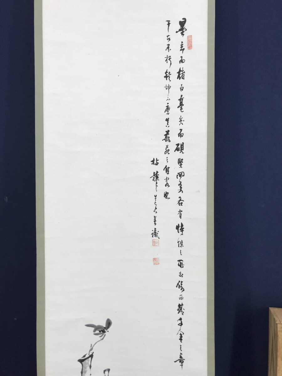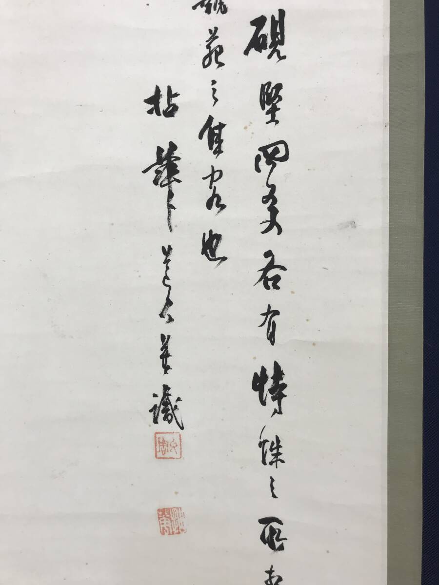 【作品状態】 本紙は紙本肉筆です。本紙は多少の汚れシミ、折れ、巻シワあります。表装は概ね良好です。
