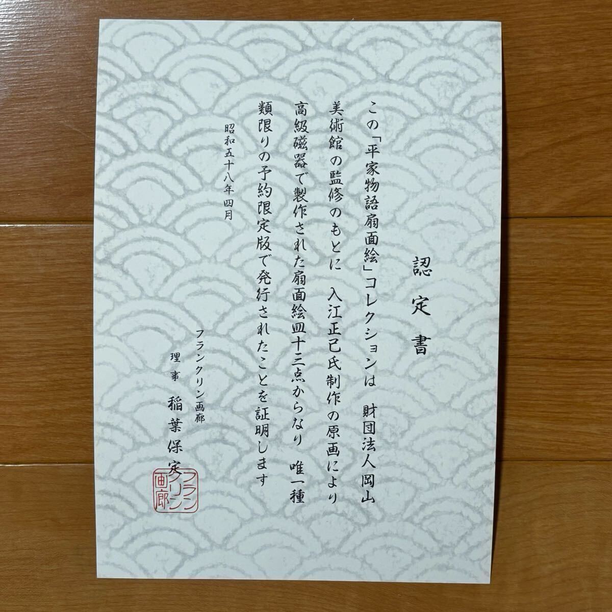 限定版 フランクリン画廊 入江正巳 原画 平家物語扇面絵皿 13枚揃 高級磁器絵皿 認定書 絵柄説明書 案内書付 送料無料