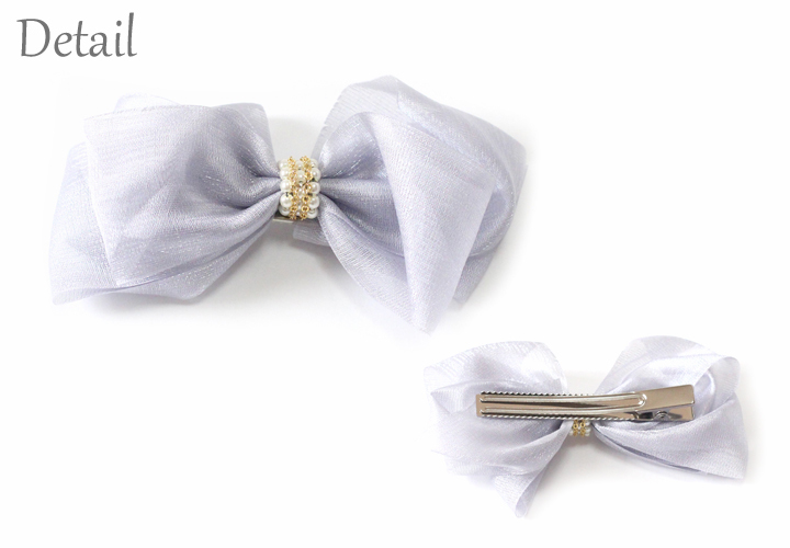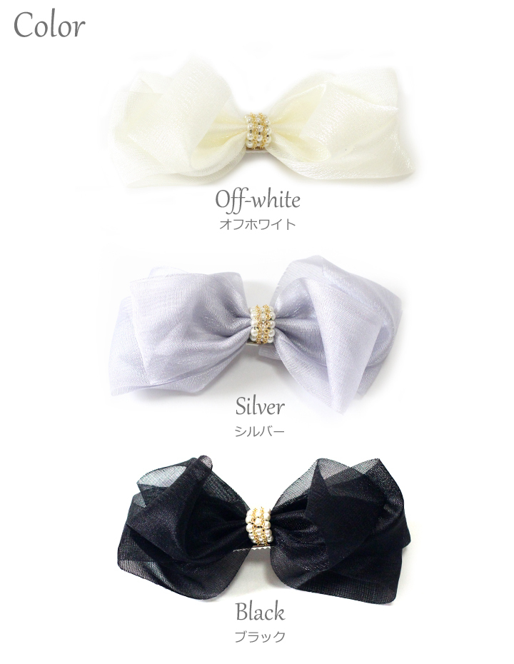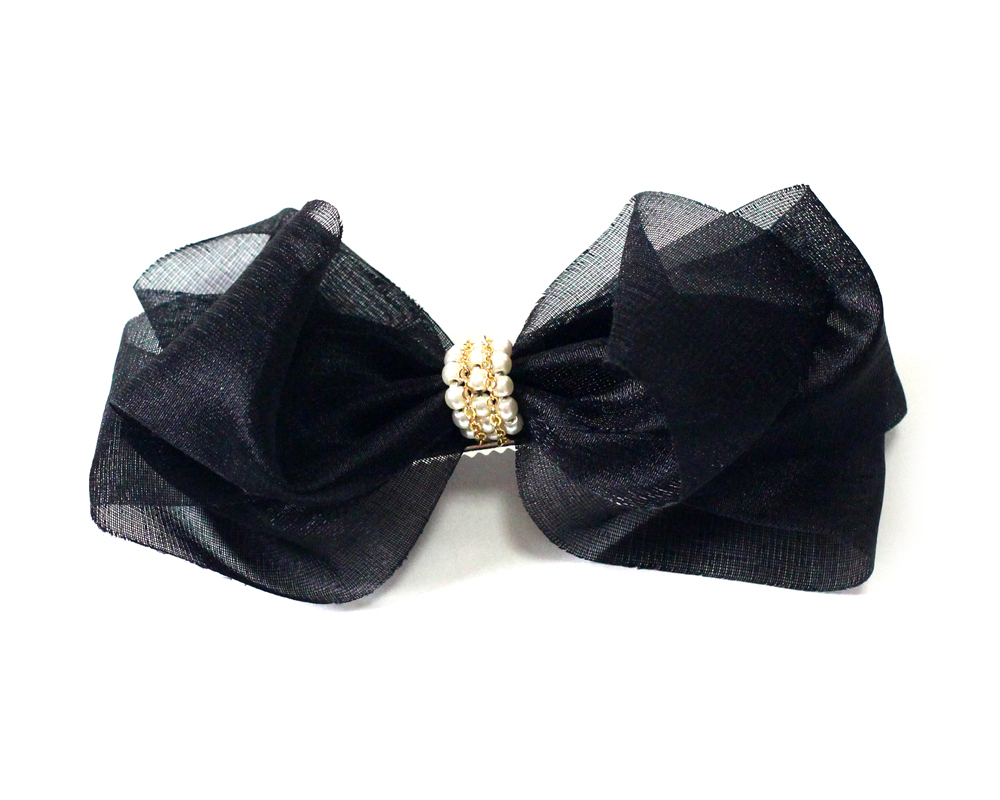 【ゆうパケット送料250円】ヘアクリップ/上品 清楚 シフォン パール リボンサイドクリップ k230☆ブラック ヘアアクセサリー