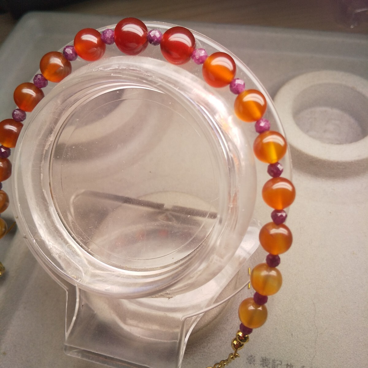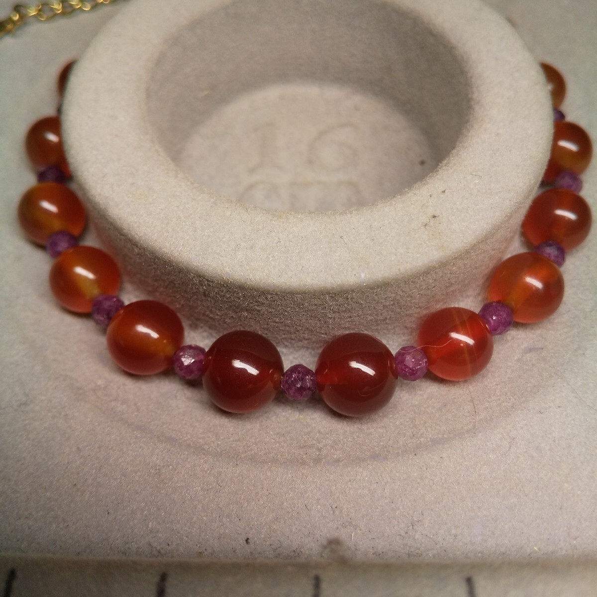 7月誕生石のルビーとカーネリアンのブレスレットです。