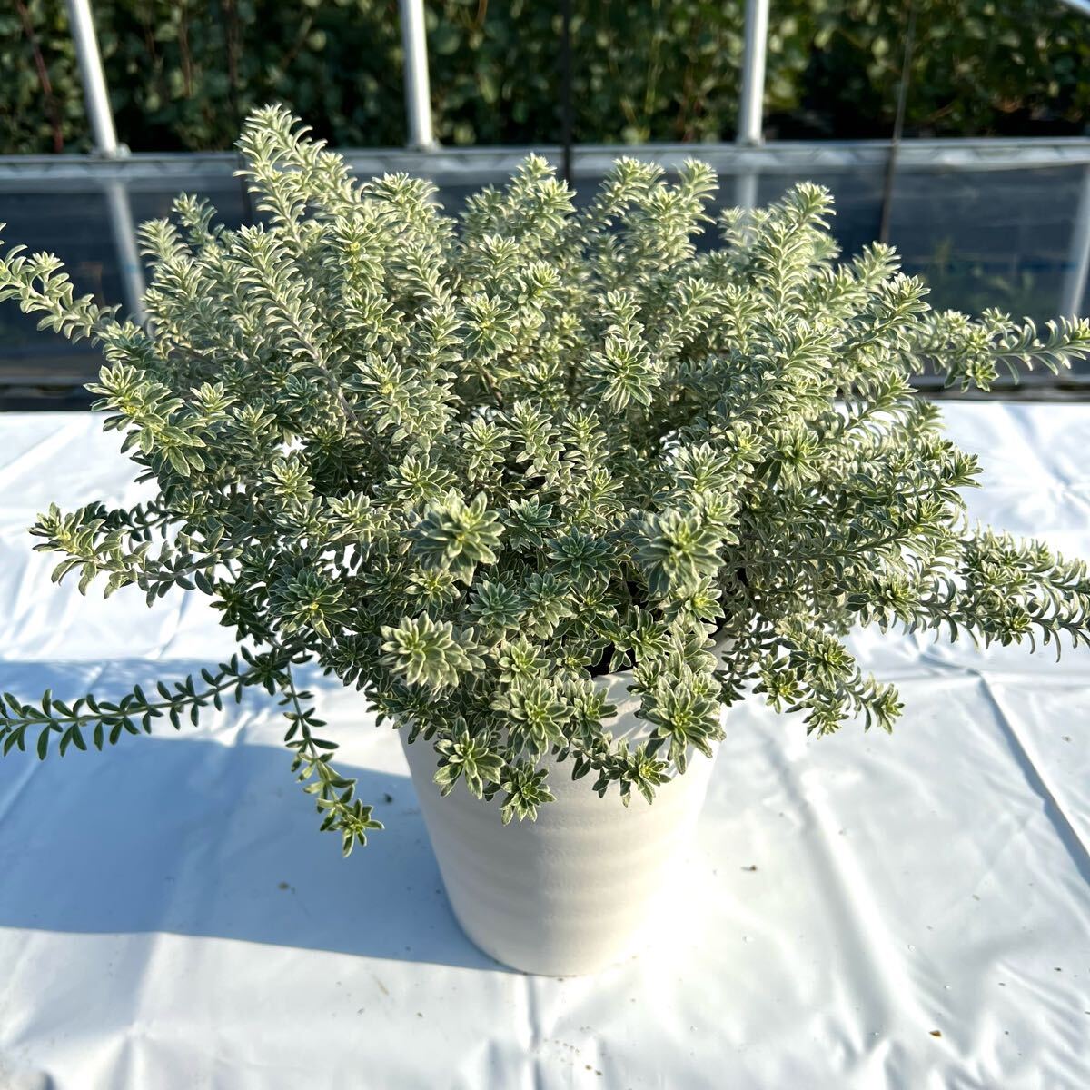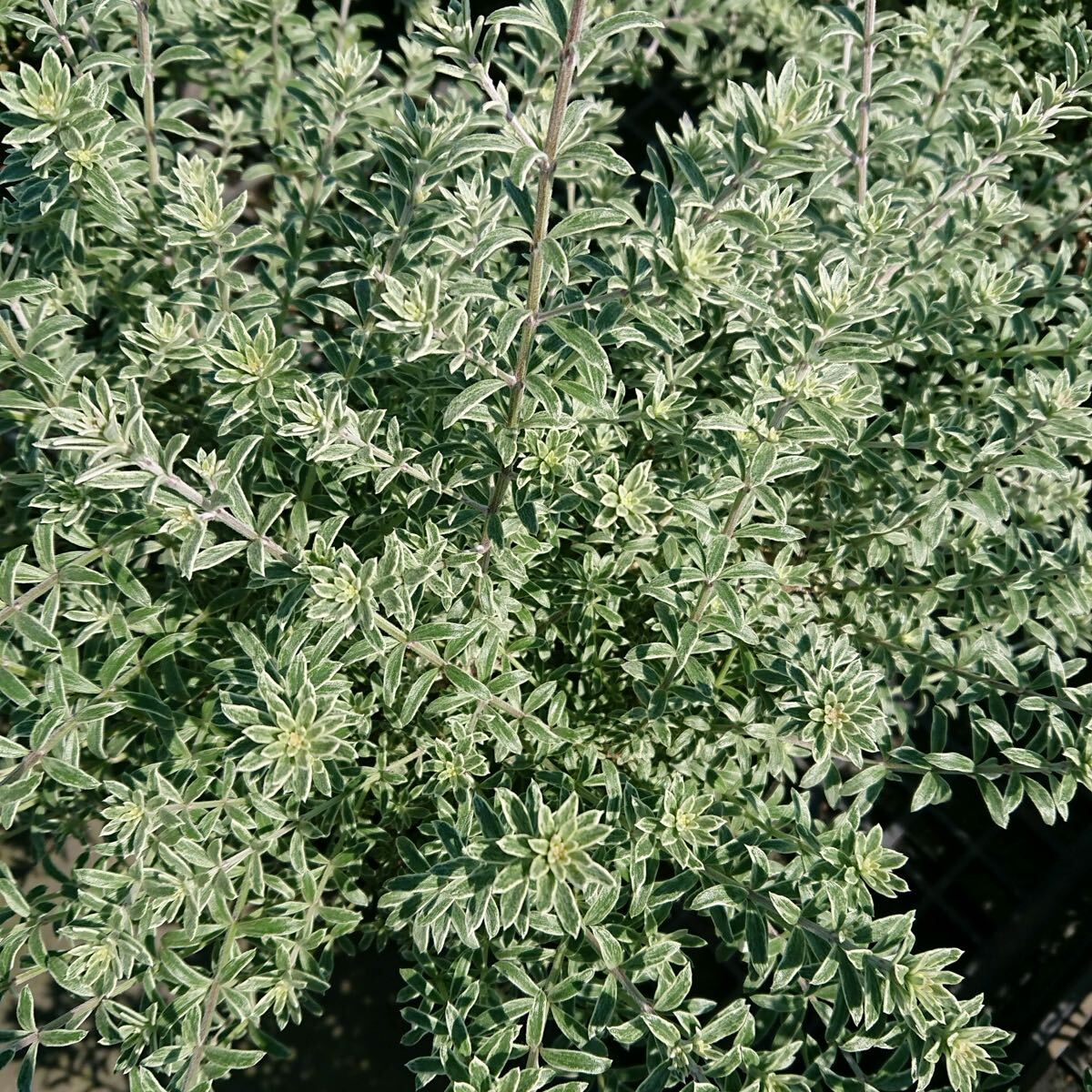 ・スモーキーホワイトはウエストリンギアの中で銀灰色の葉色と白い花が咲く種類です。