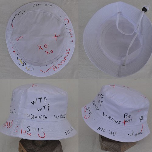 ホワイトツイル バケットハット 落書き専用 新品 どんどん漫画風落書き