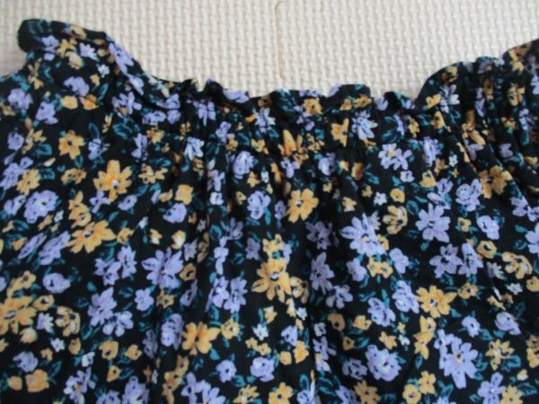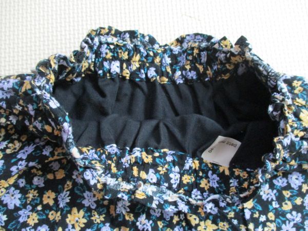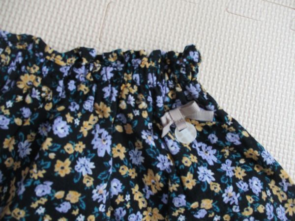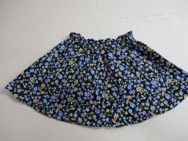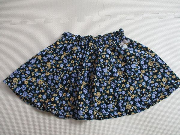 BG582【petit main・プティマイン】リボン 花柄模様 裏地付き フレアースカート 女児 濃青 90 | |
