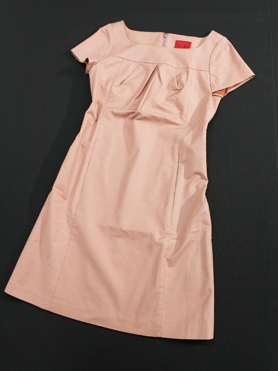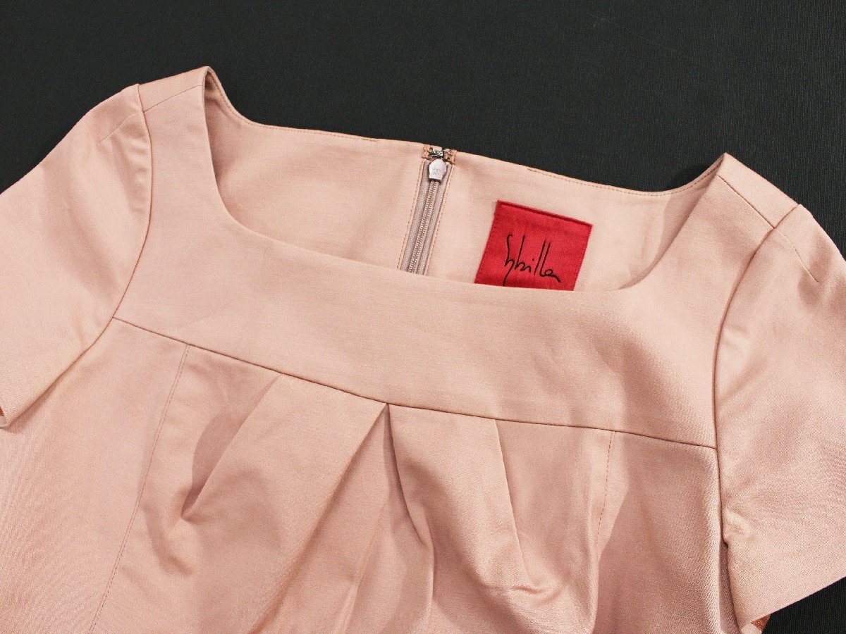 sybilla/シビラ コットン無地スクエアネック半袖ストレッチワンピース ピンクM rl524