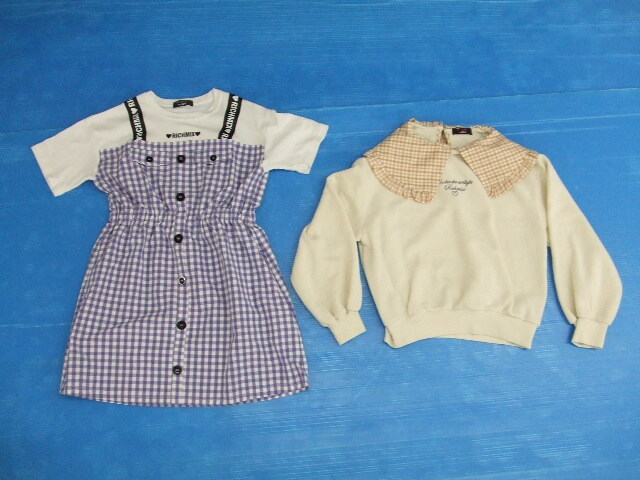 RICH MIX/リッチミックス 女の子140サイズ2点セット ①ワンピース/紫・白 ②襟付きトレーナー/ベージュ系