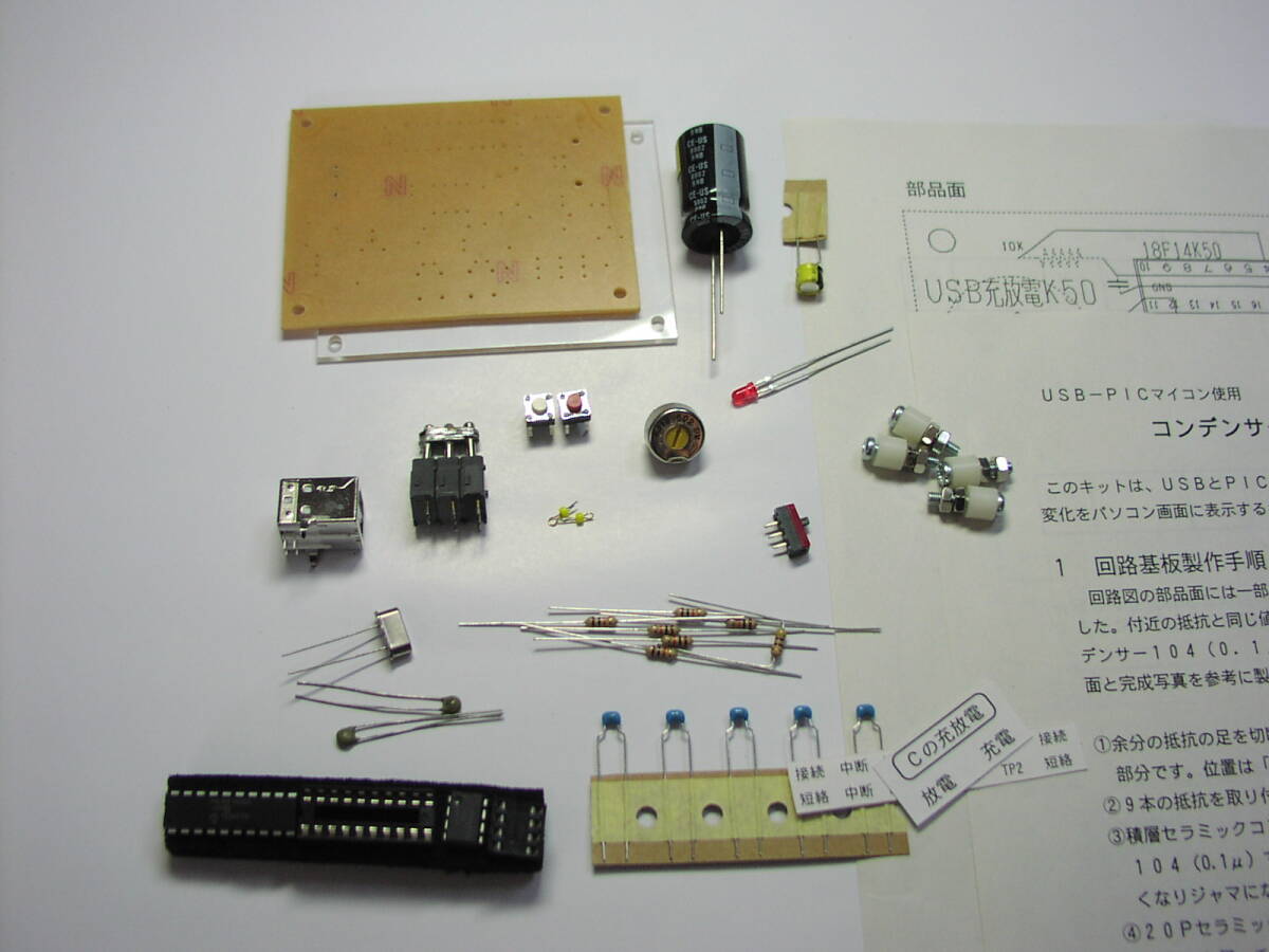 ●PICマイコンを応用するキットです。PICマイコンでコンデンサーと抵抗にかかる電圧を計測し、8ビットAD変換をしてUSBを介しパソコンに送信します。パソコン側は受信したAD変換値をもとに画面に1ドット描きます。この処理を800回繰り返しますが、中断することもできます。回路とパソコンはUSB-HIDクラス接続なので専用ドライバーは不要で、両者をUSBケーブルで接続するだけで動作可能になります。なおUSBケーブルは付属しません。
