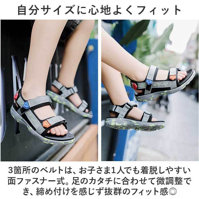 | 商品説明 | ・・夏のお出かけで大活躍!サッと履けてストレスフリーな「キッズ用サンダル」が新登場。 ・【クールなスポーティールックス】 ・カジュアルコーデに馴染むスポーティーデザイン。ロゴやカラー使いがアクセント。 ・【自分サイズに心地よくフィット】 ・・3箇所のベルトは、お子さま1人でも着脱しやすい面ファスナー式。足のカタチに合わせて微調整でき、締め付けを感じず抜群のフィット感◎ ・【汗ばむ季節もサラッと快適】 ・全体的に開放感があり、通気性のあるつくり。真夏でもムレにくいのがポイント。 ・【足裏への負担を抑えるインソール】 ・足裏に直接当たる部分は、もっちりとした質感。足にかかる負担を吸収して、疲れにくい仕様。 ・【屈曲性があり、歩きやすさが向上】 ・つま先部分が足の動きに合わせて柔軟に曲がり、やや上を向いたつくり。つまづきにくく蹴り上げやすい! ・【安定感のある歩行をサポート】 ・底面は弾力性があり、ほぼフラットな形状で安定感もばっちり。 ・【アクティブに動ける軽量設計】 ・軽やかな履き心地で、長時間履いても大丈夫。夏のお出かけの相棒に☆ |