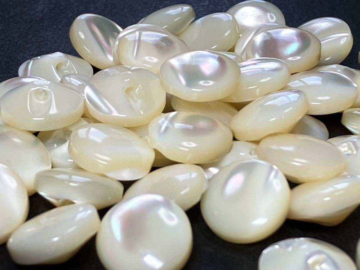 貝ボタンから目玉ボタンを作るのは大変手間がかかるためあまり流通していない珍しいボタンです。