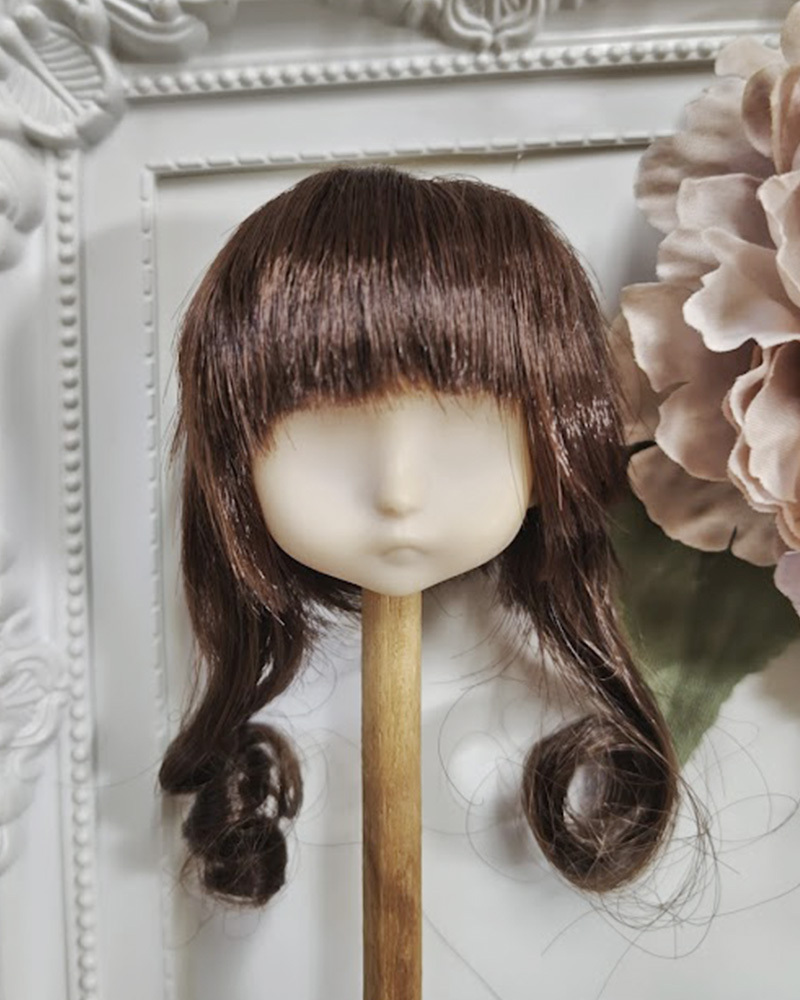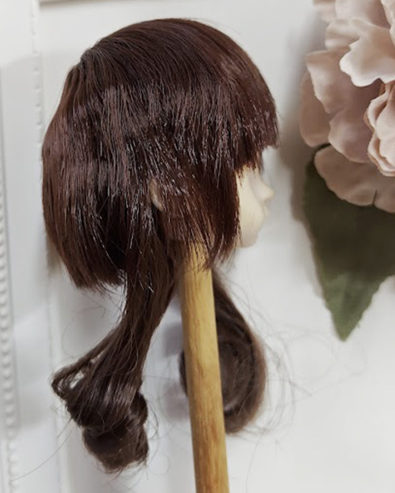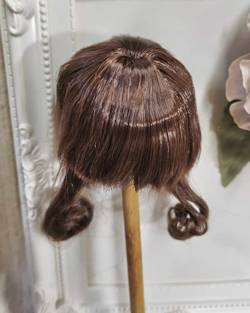 ★セリアドール ドールウィッグ ドールヘッド「キュート」 ハンドメイド カスタムドールなどに★No.04 こげ茶系 ボブ&ツインテール