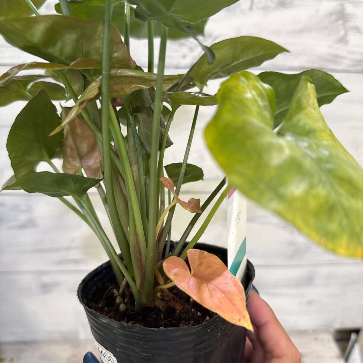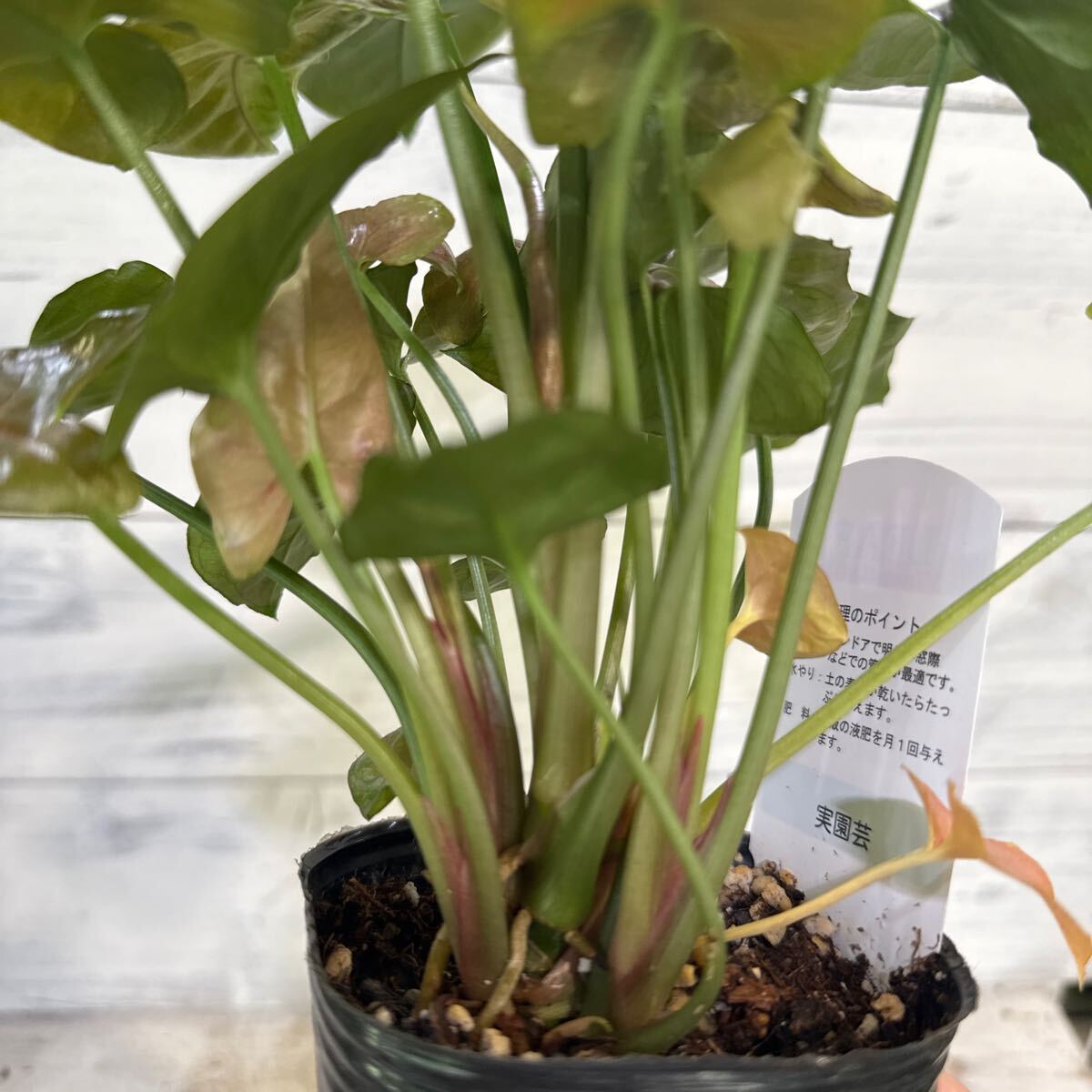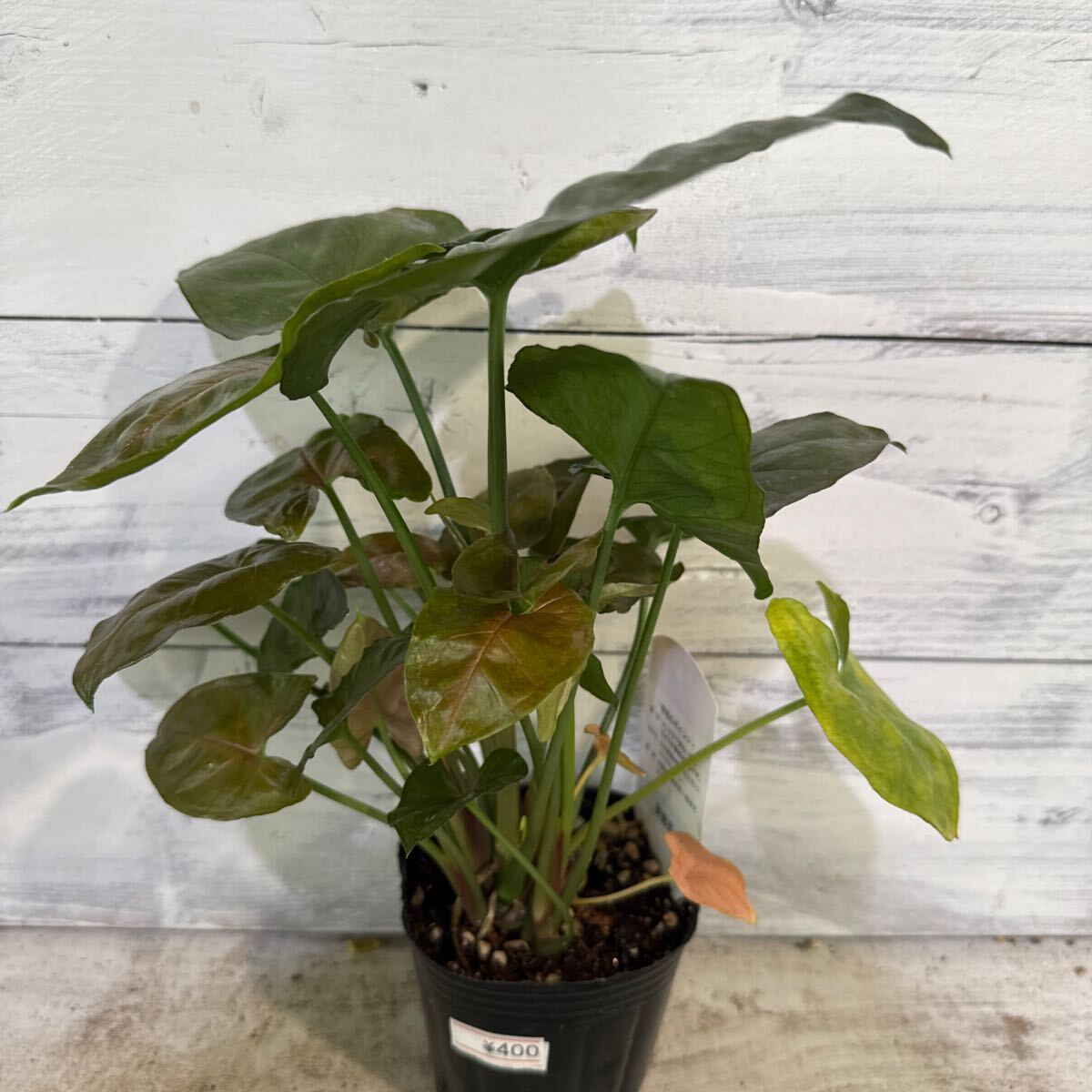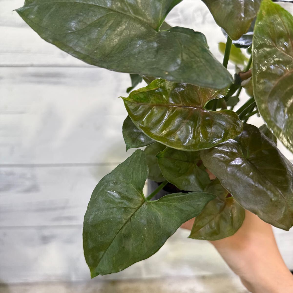 シンゴニウム・マリア(Syngonium podophyllum ‘Maria’)は、グリーンとブロンズ(ブラウン)が混ざった独特の葉色が魅力の観葉植物です。