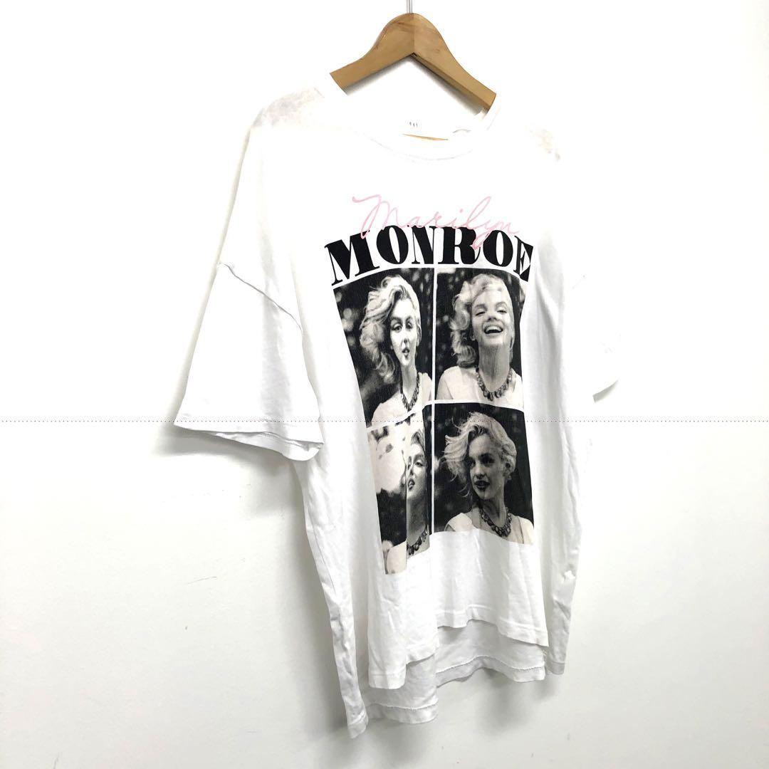 マリリン・モンロー プリント Tシャツ 丸首 海外 L ホワイト 海外ファッション オーバーサイズ 人物プリント 海外ストリート