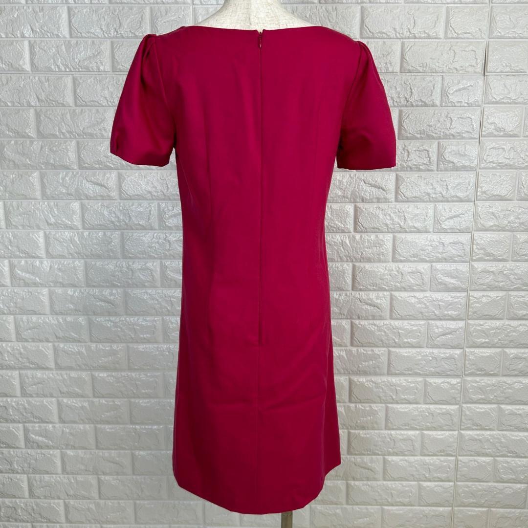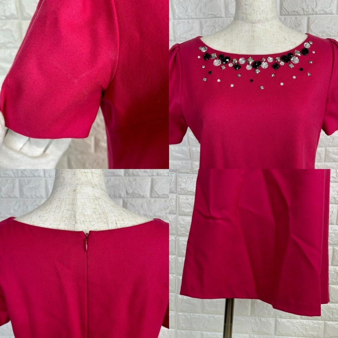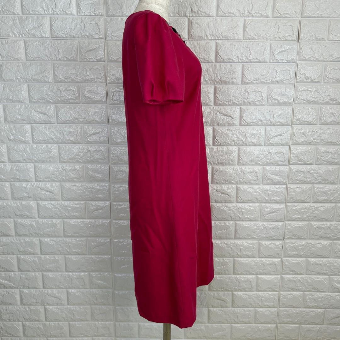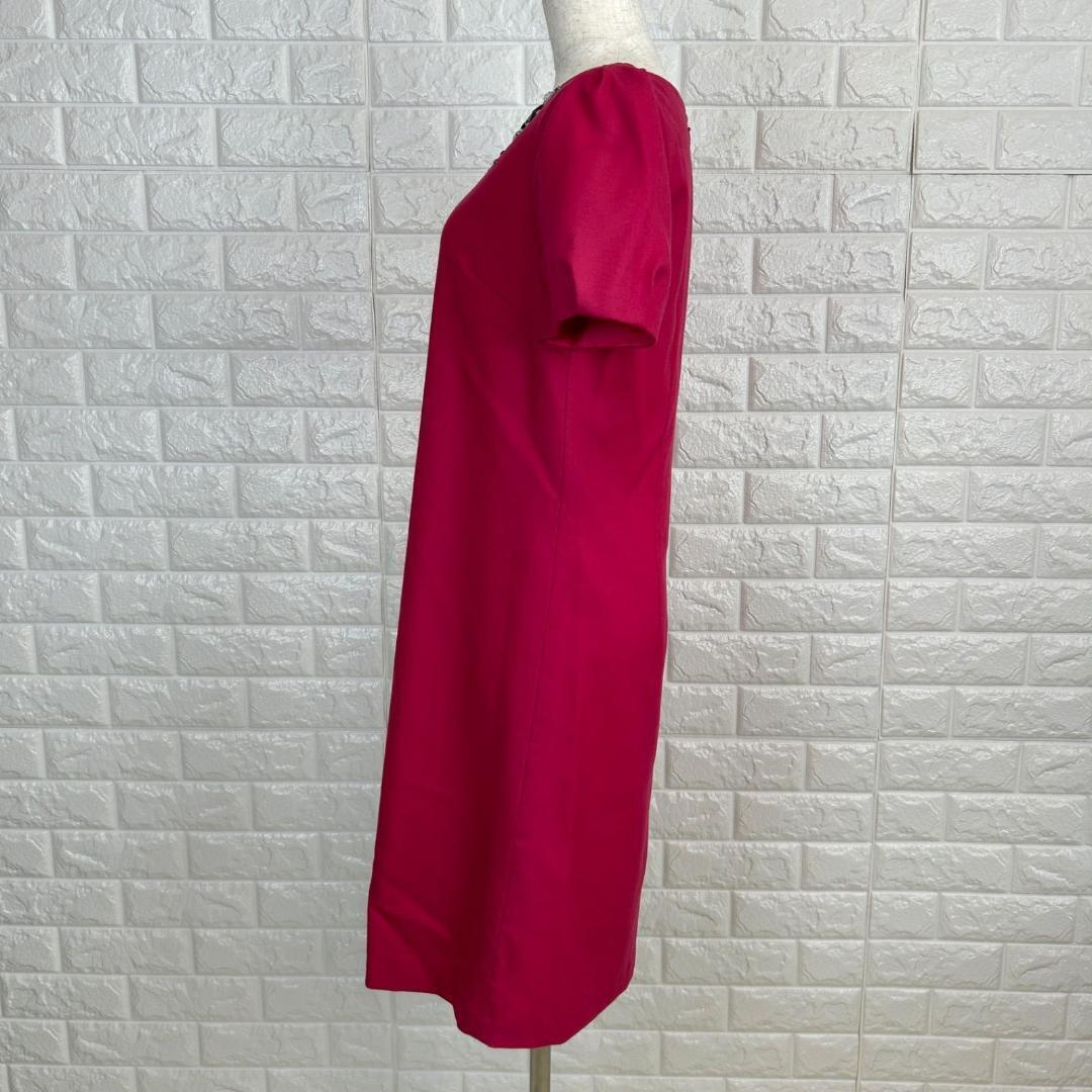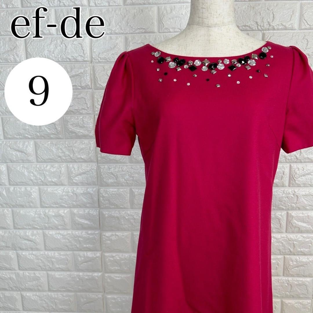 【AA1507】 ef-de エフデ 9 Mサイズ相当 ビジューデザイン ミドル丈ワンピース ピンク 半袖 上品 エレガント レディース 春夏