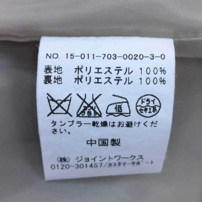 | 商品説明 | 【管理番号】 010954 【ブランド名】 IENAイエナ 【商品名】 【アイテム】 フード付きブルゾン 36 【型番】 【サイズ】 36 平置採寸(裄丈:約66.5cm・身幅:約50cm・着丈:約65cm) 【色・柄】 ベージュ 【素材】 表裏地:ポリエステル100% 【付属品】 【外観ランク】Aランク【内観ランク】 【商品補足説明】 右袖に5cm程の汚れがあります。 | ||