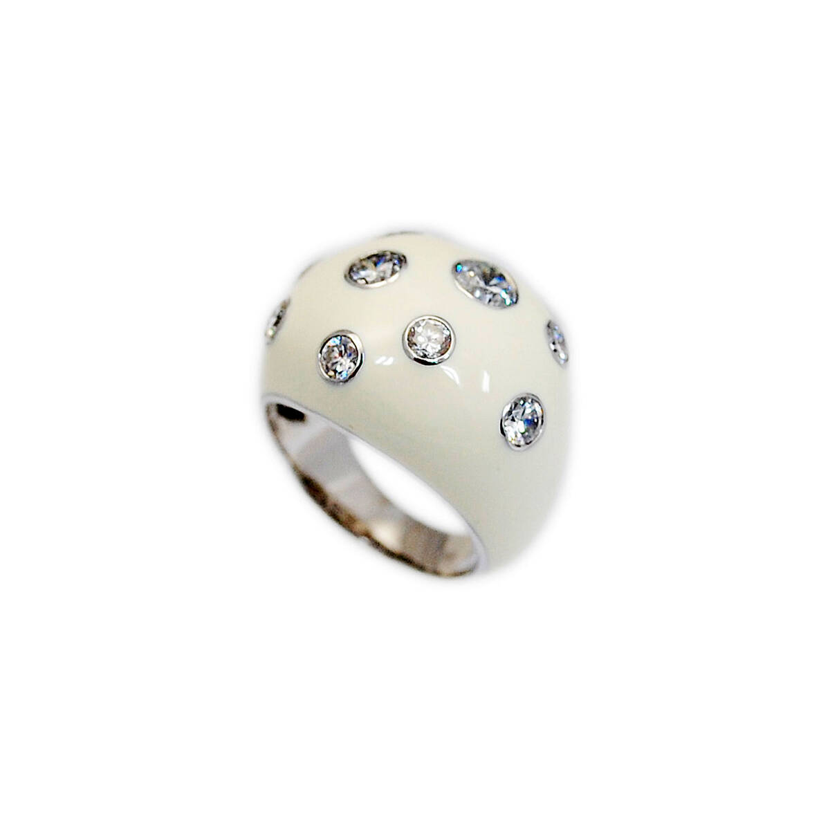 16号 ベージュエナメルジルコニア925シルバーロジウムメッキリング 925刻印あり GF-18815W