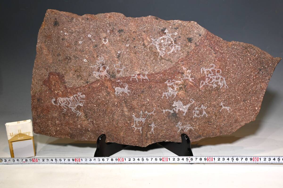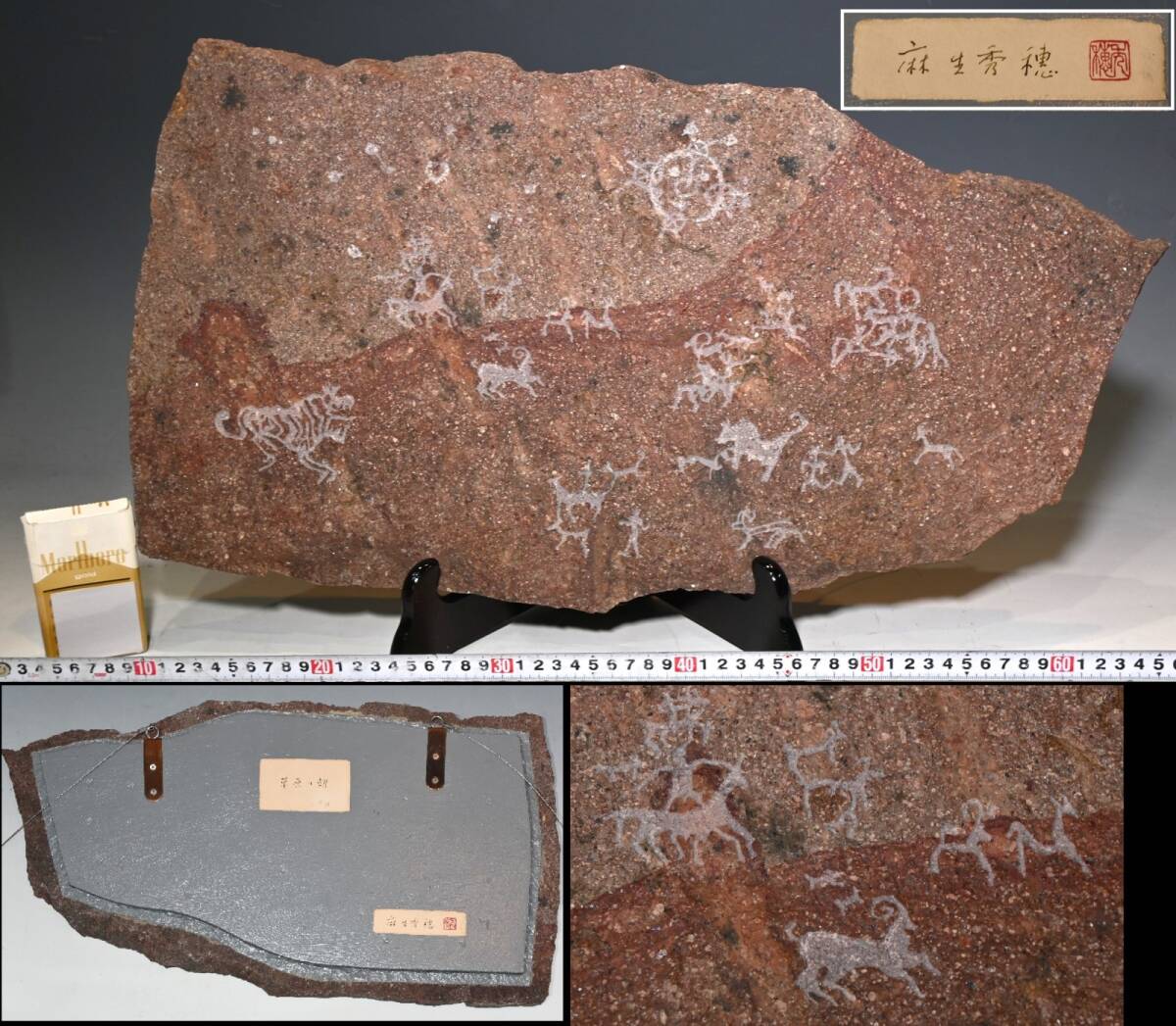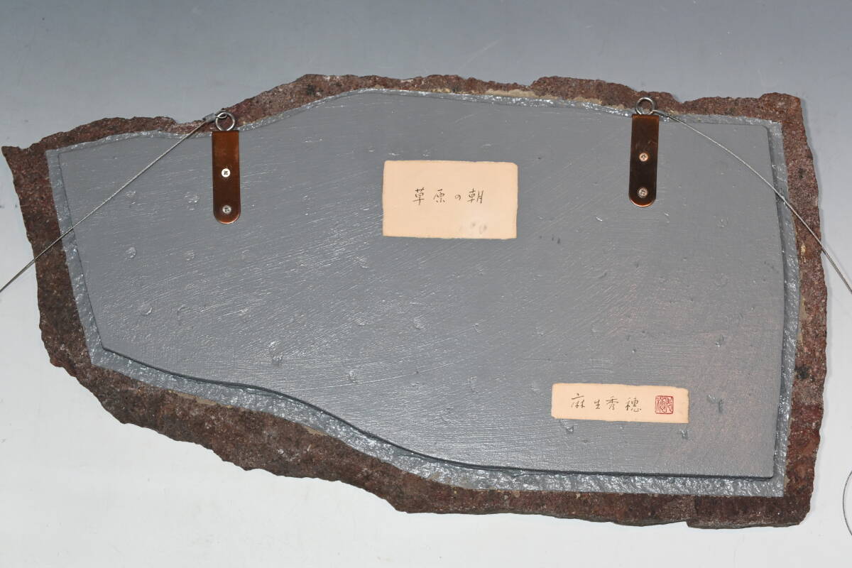 東京藝術大学名誉教授■造形美術家 麻生秀穂■ 希少 石板『草原の朝』レリーフ 自然石 彫刻 壁掛け 先住民族 壁画 真作 オブジェ アート | |||