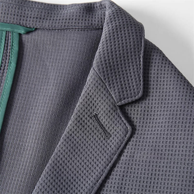 W0415-3XL/灰 新品 ワッフル ストレッチ ニット アンコン ブレザー カジュアル ジャケット 春夏 背広 メンズ テーラードジャケット 防シワ