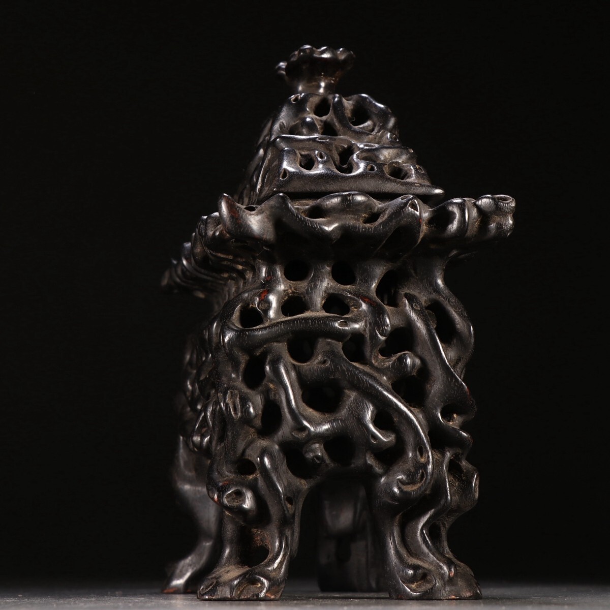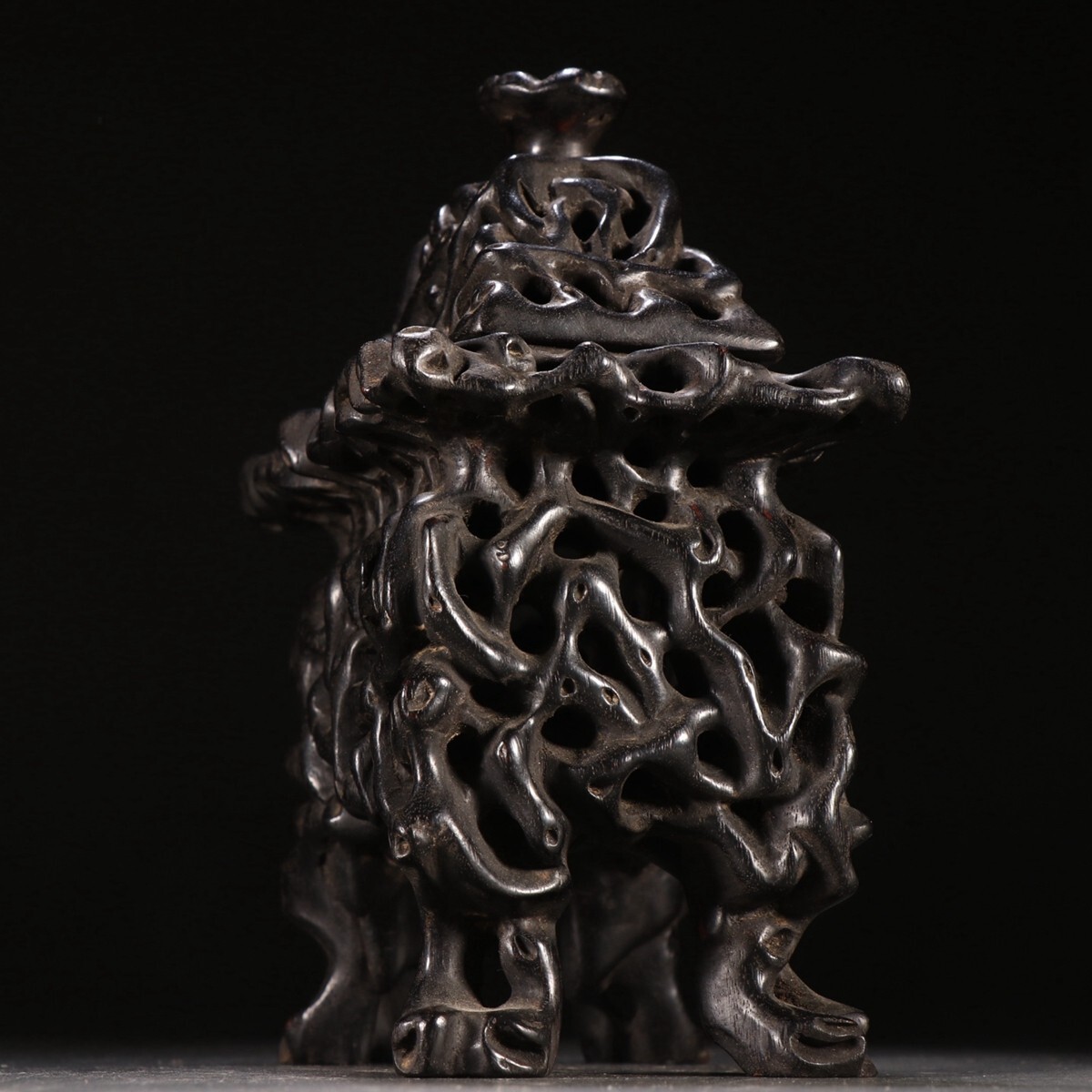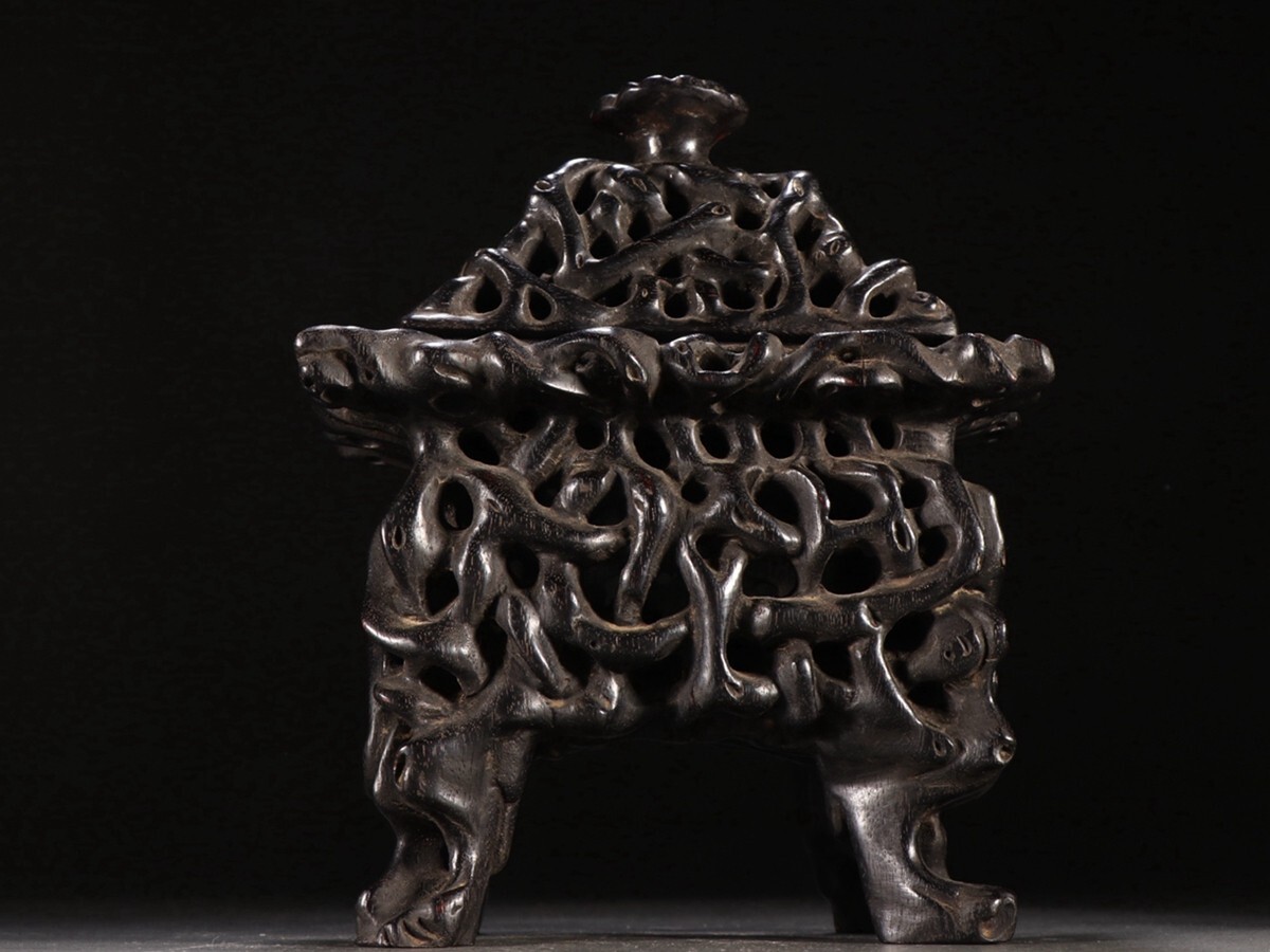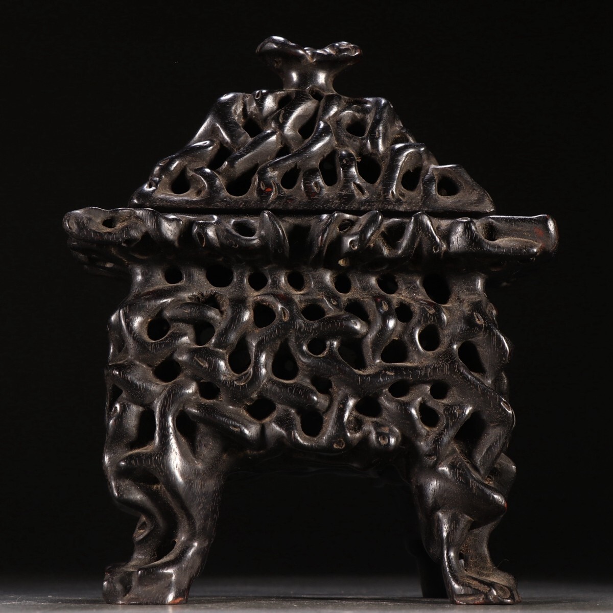 「清時代 老紫檀の木 鏤空彫り 倣生根 香薰」極細工 擺件 賞物 古美術 骨董品 蔵出