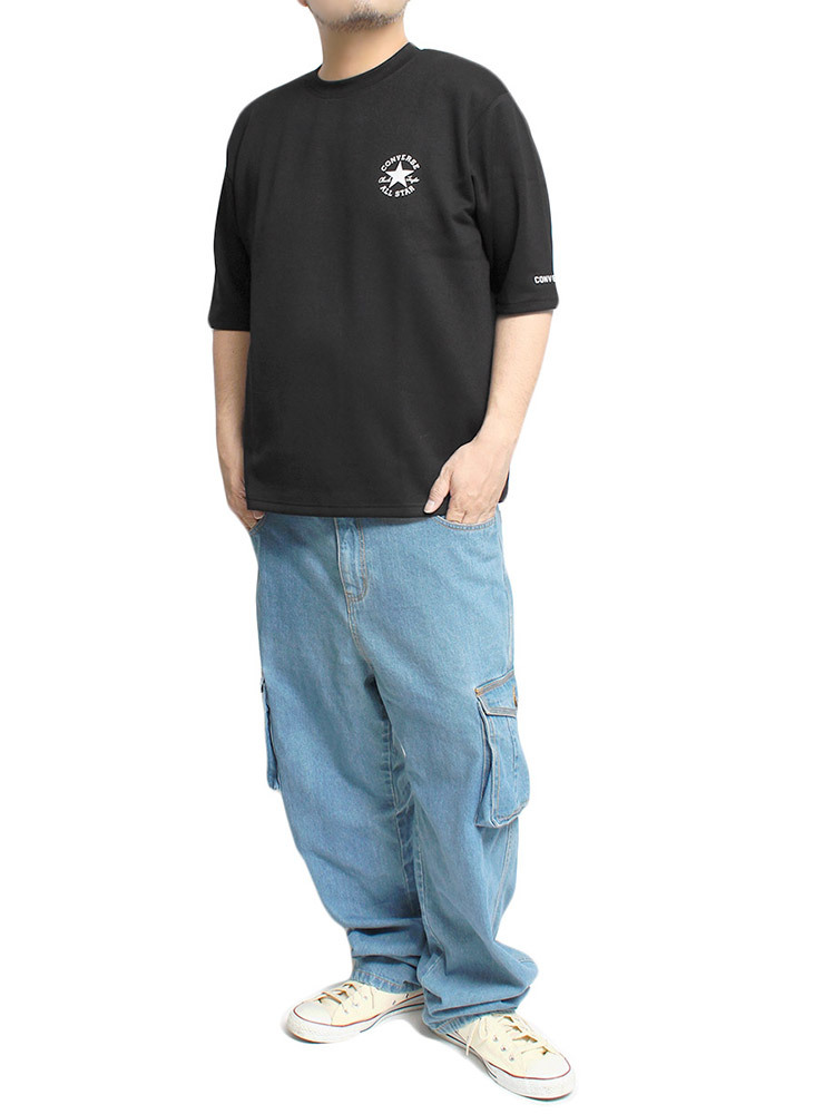 商品名 | 【新品】 4L ブラック コンバース(CONVERSE) 5分袖 Tシャツ メンズ 大きいサイズ 接触冷感 ロゴ プリント クルーネック カットソー |