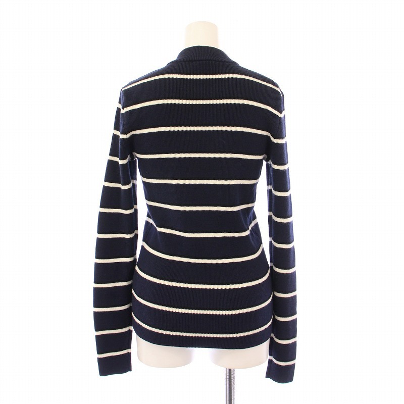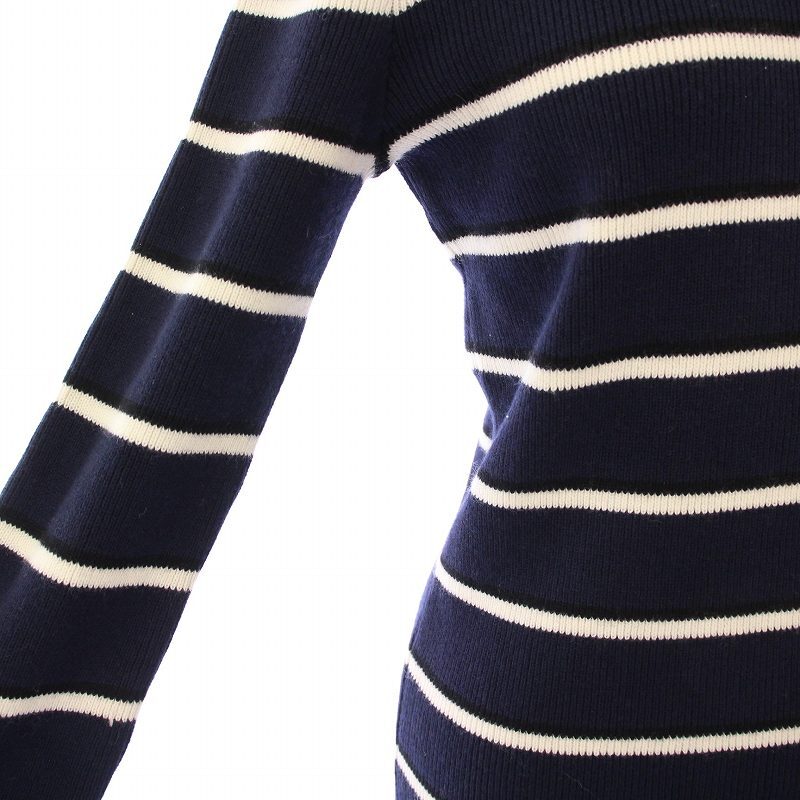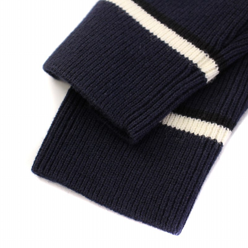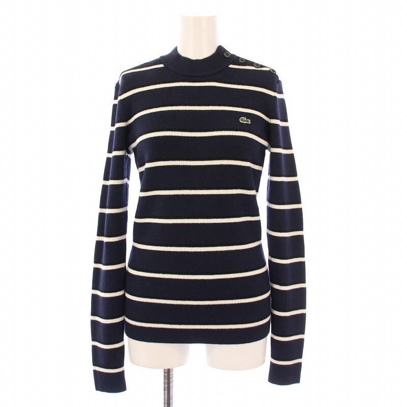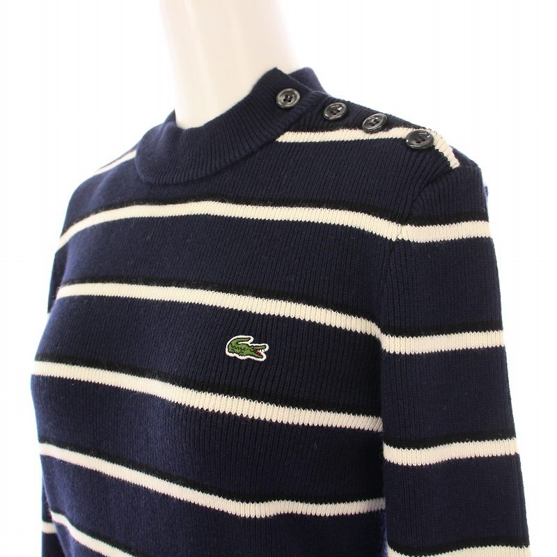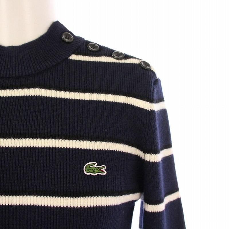 未使用品 ラコステ ライブ Lacoste L!VE ニット 長袖 クルーネック ストレッチ ロゴ 刺繍 ボーダー柄 ウール混 34 紺 ネイビー 白