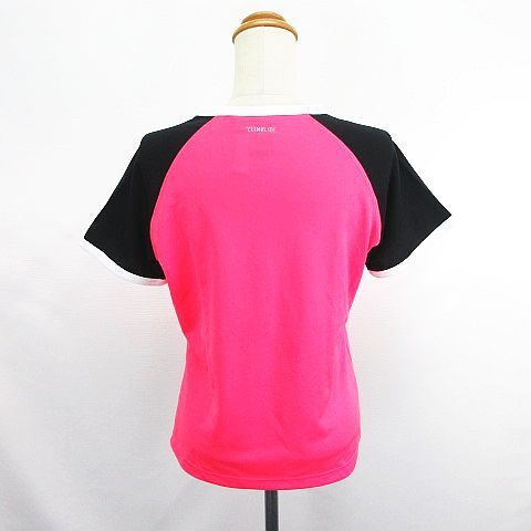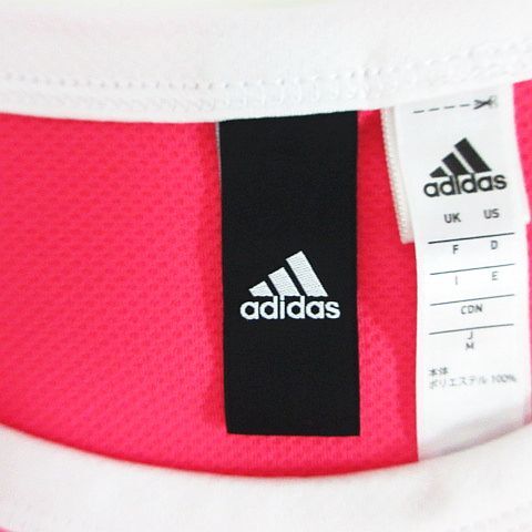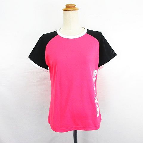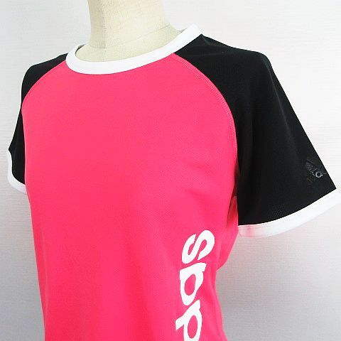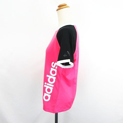 アディダス adidas Tシャツ カットソー 半袖 クルーネック ロゴ M ピンク×ブラック スポーツウェア ※EKM レディース
