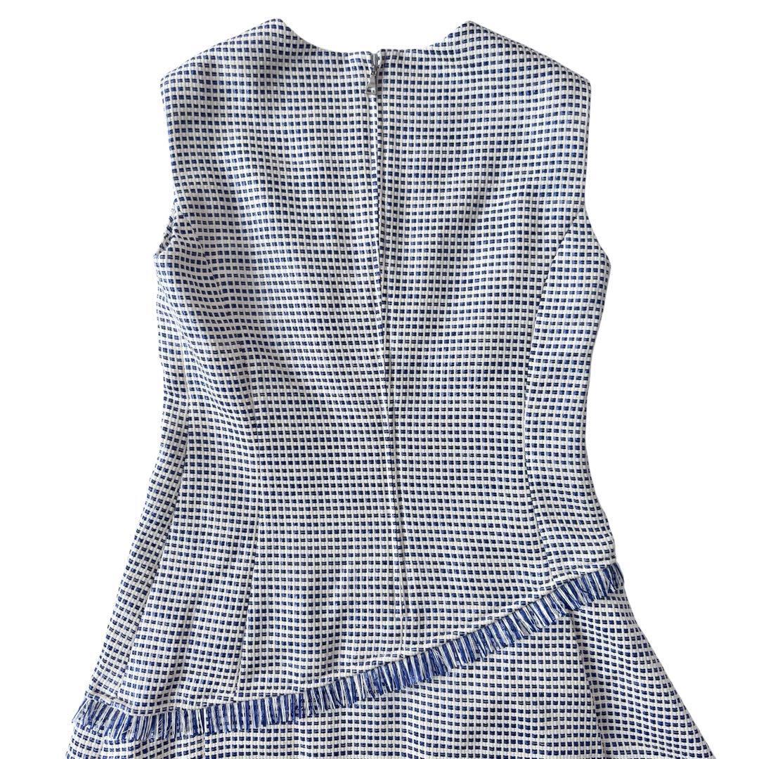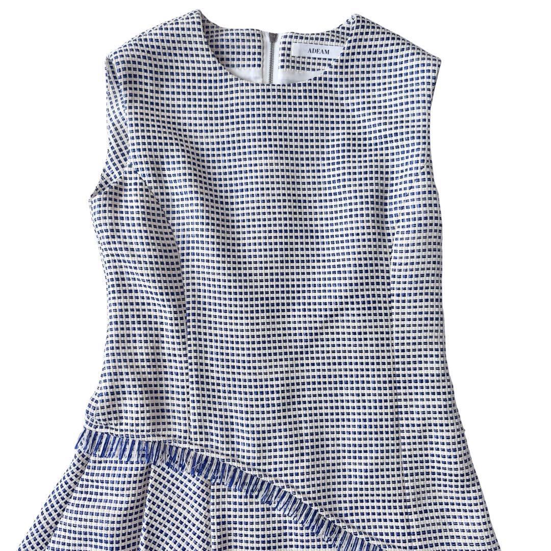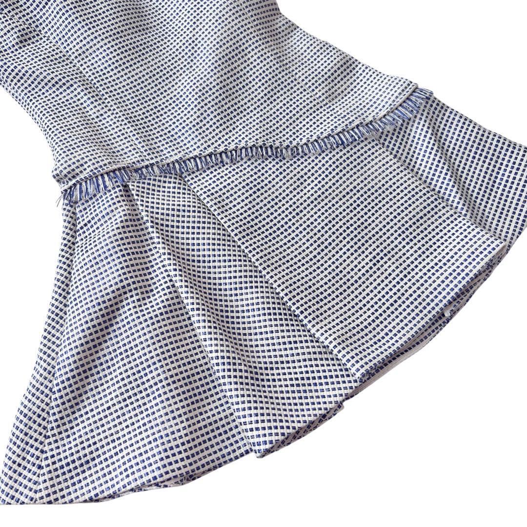 アディアムのワンピース、青と白の編み込んだチェック柄で、暑い季節にあうワンピースかと思います。