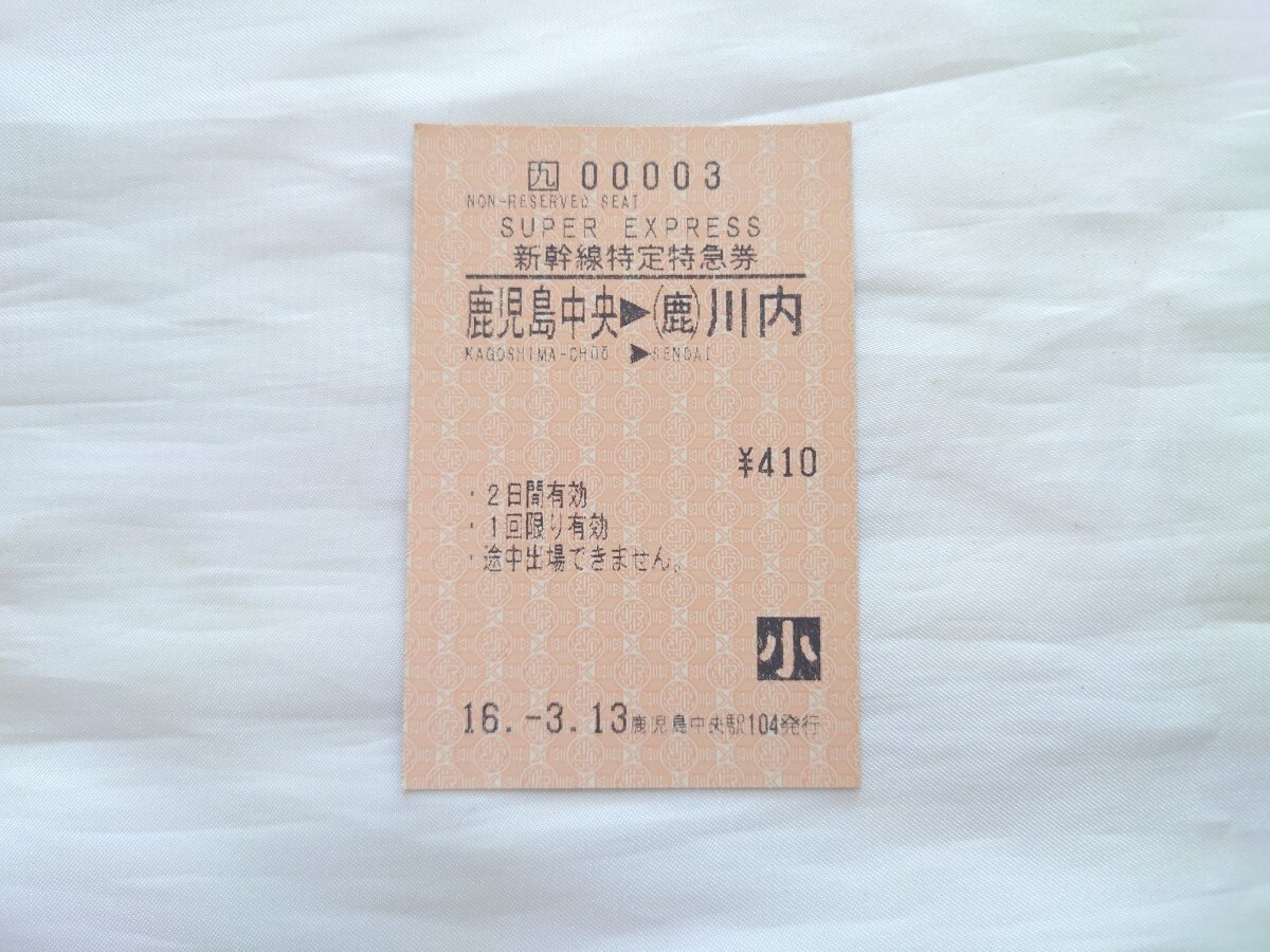 ▼JR九州・九州新幹線開業初日▼鹿児島中央→川内 新幹線特定特急券▼平成16年