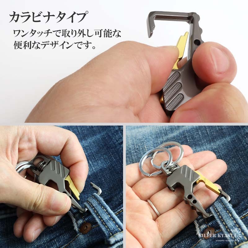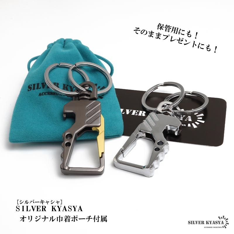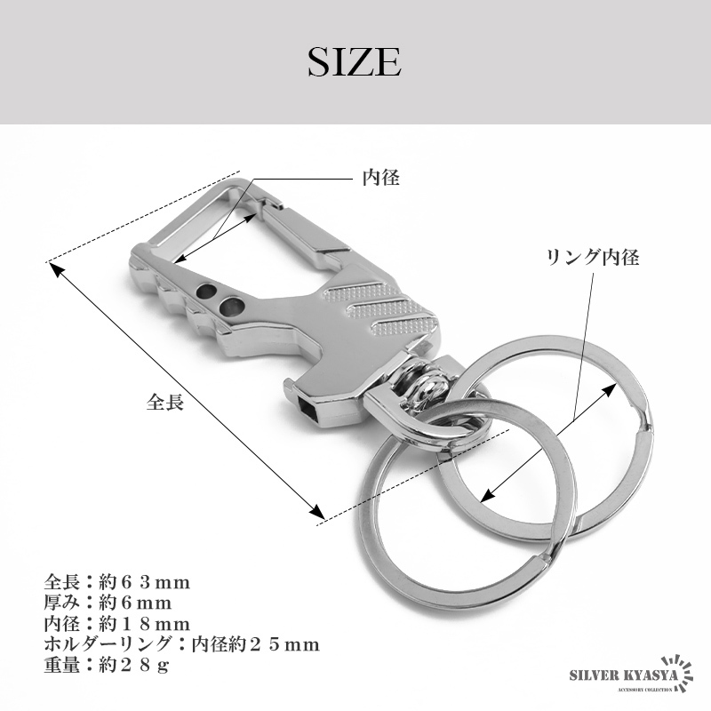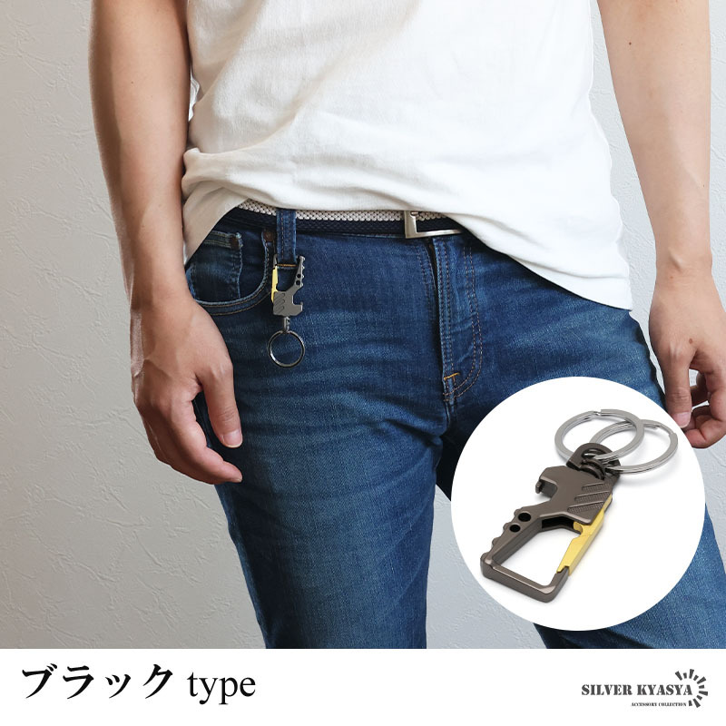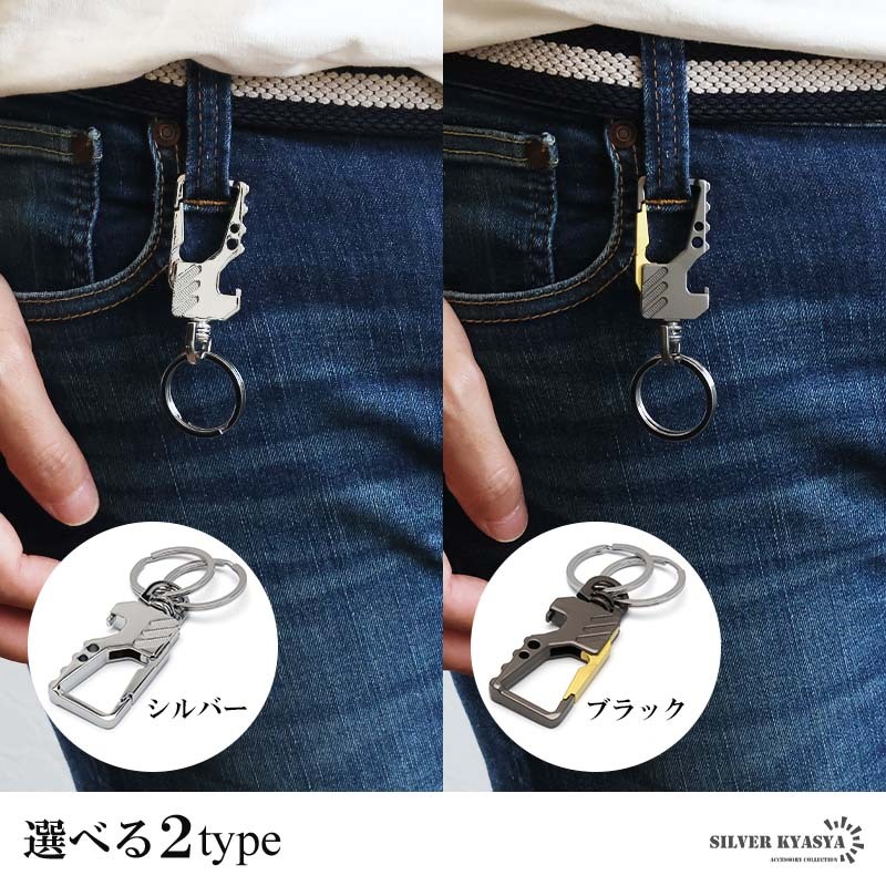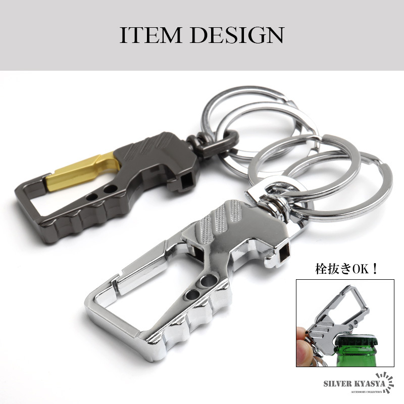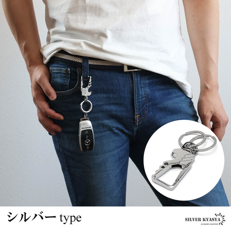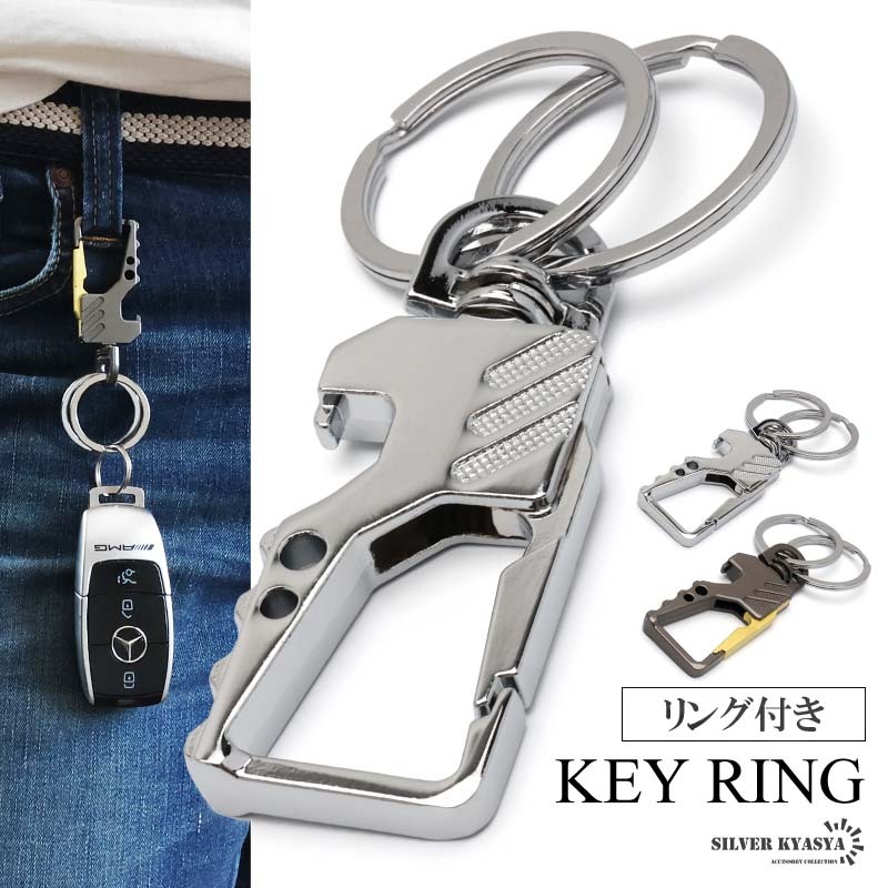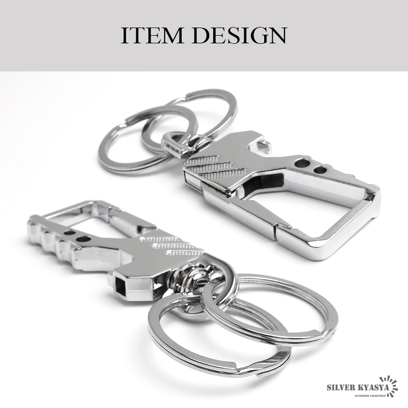 スタイリッシュなデザインのキーリング。ボディはメタリックな質感で高級感漂う雰囲気に。家のカギや車のカギなどダブルリングがしっかりとまとめてくれます。瓶のフタなどの栓抜きが可能な爪があり汎用性が高いのもポイントです。お洒落な見た目でカジュアルやスーツスタイルなど幅広く馴染んでくれます。