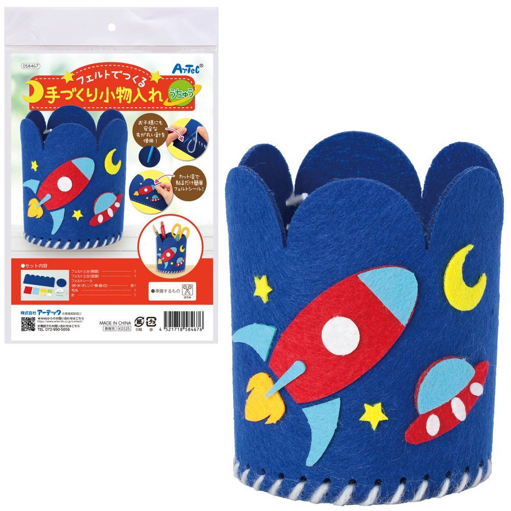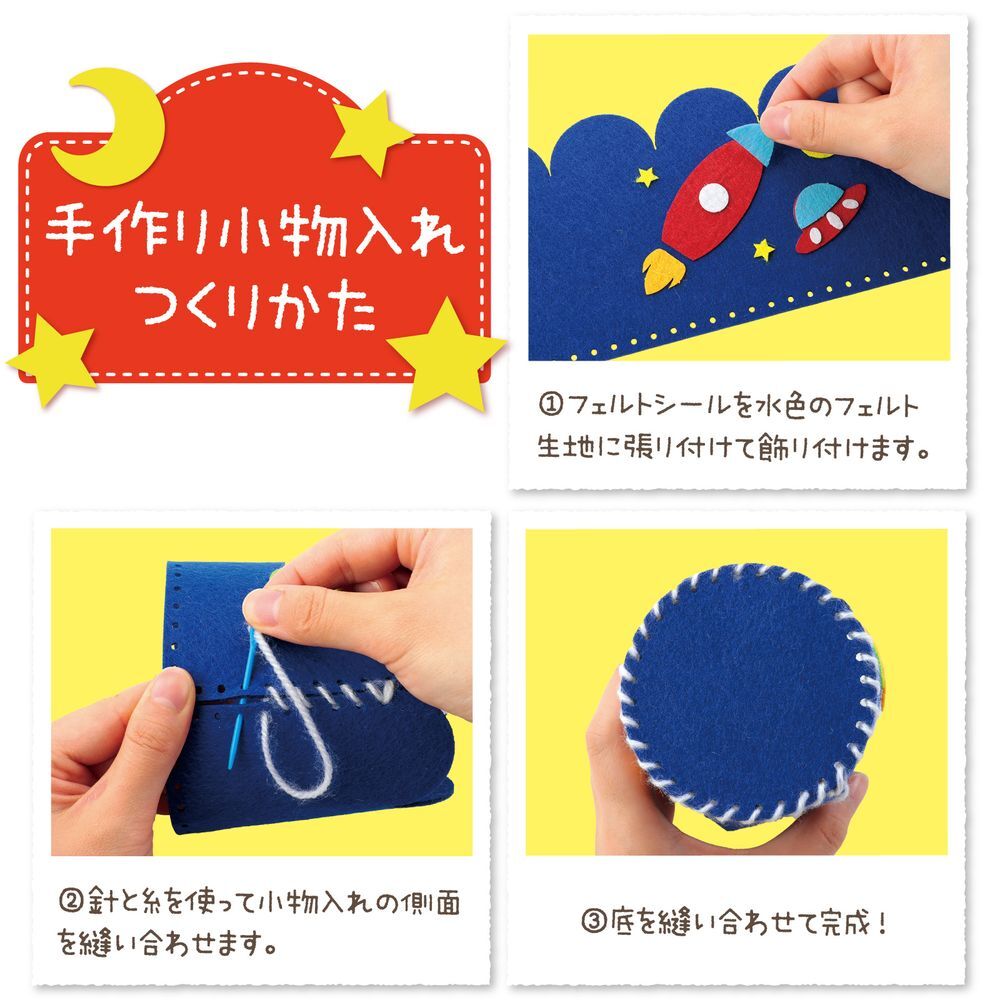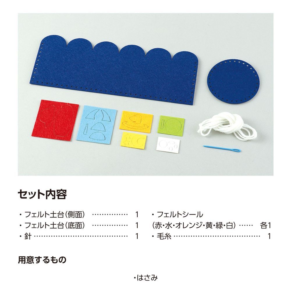 カット済・穴あけ済のフェルトパーツを専用針で縫い合わせるだけのキットです。簡単にかわいい小物入れが製作できます。