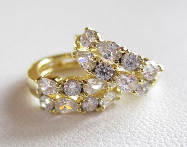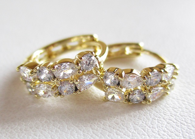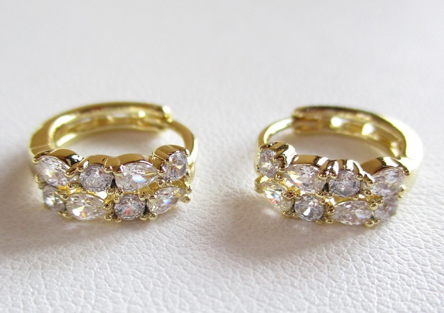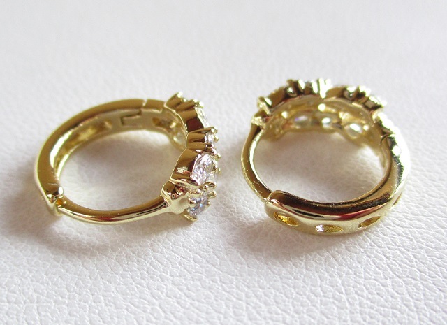 複雑なカットで美しい煌めきを放つキュービックジルコニアのフープピアスになります。吸い込まれるようなクリアな輝きはグレードの高いダイヤモンドに匹敵する魅力があります。