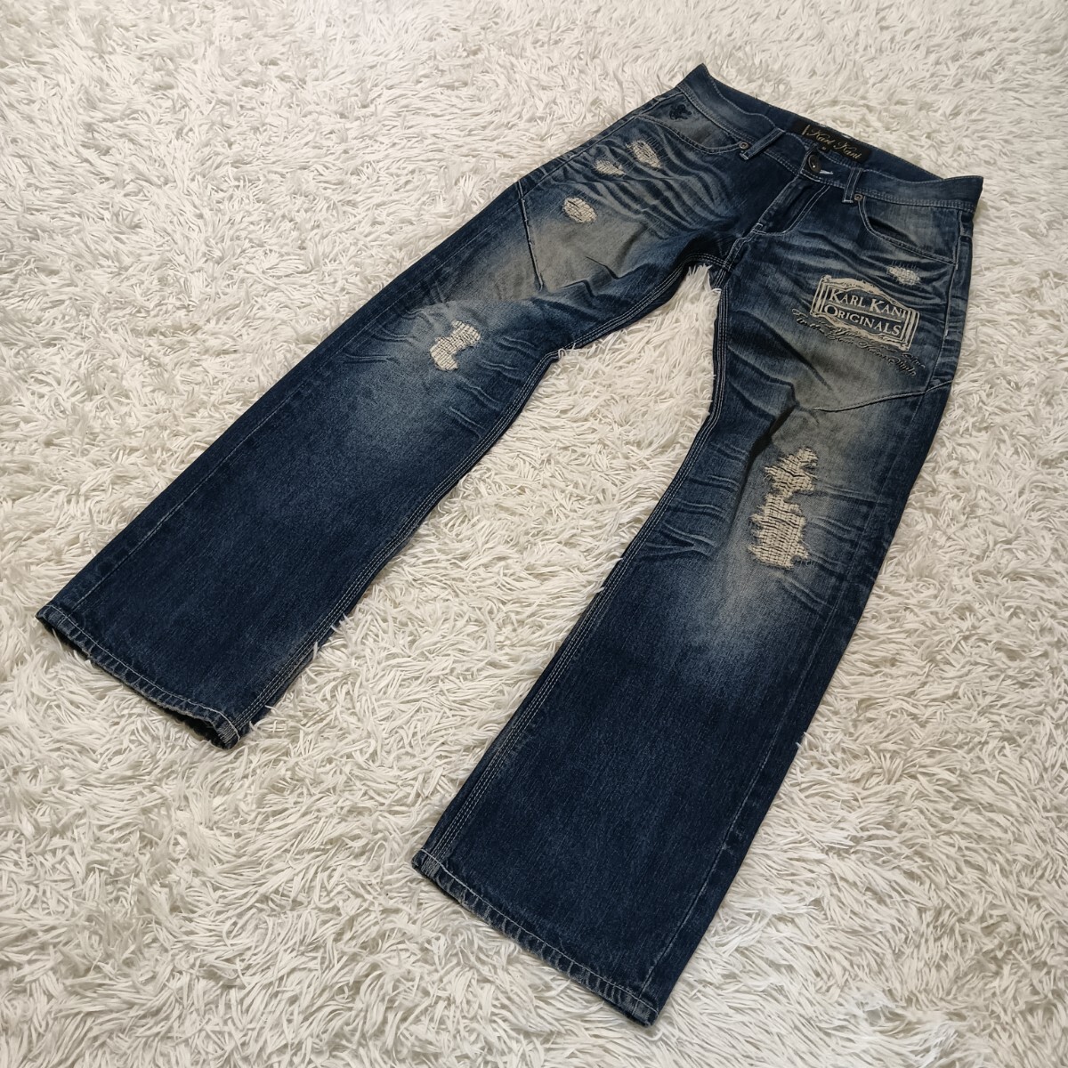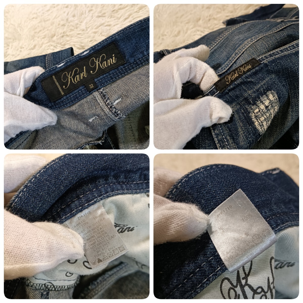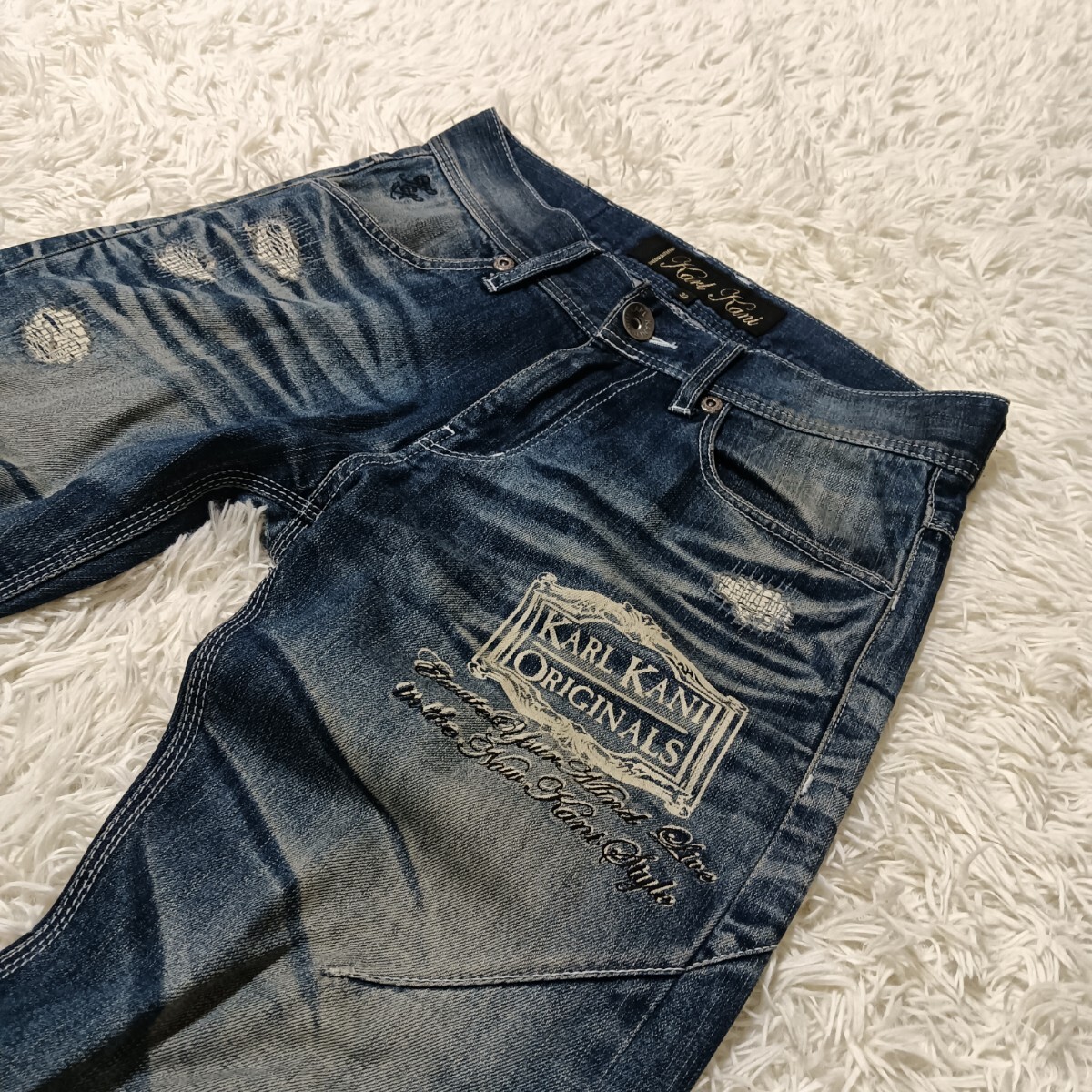 ★KARL KANI 21K1710 デニムパンツ ジーンズ ジーパン プリント加工 ダメージ加工 リペア加工 ユーズド加工 ボトムス サイズ32 アーカイブ ヴィンテージ オールド カールカナイ Y2K 古着 USED