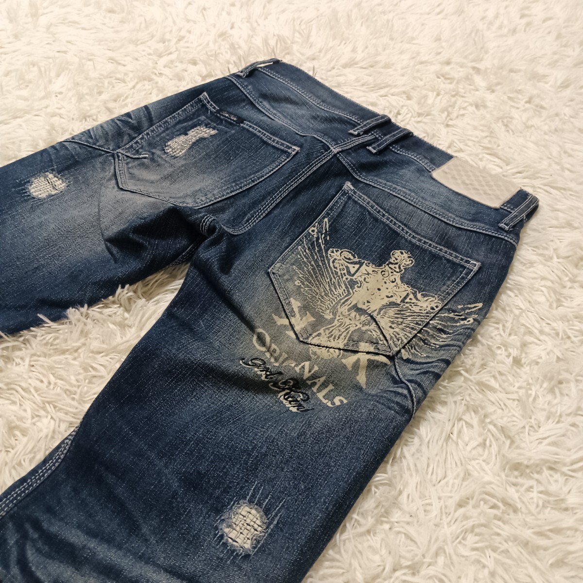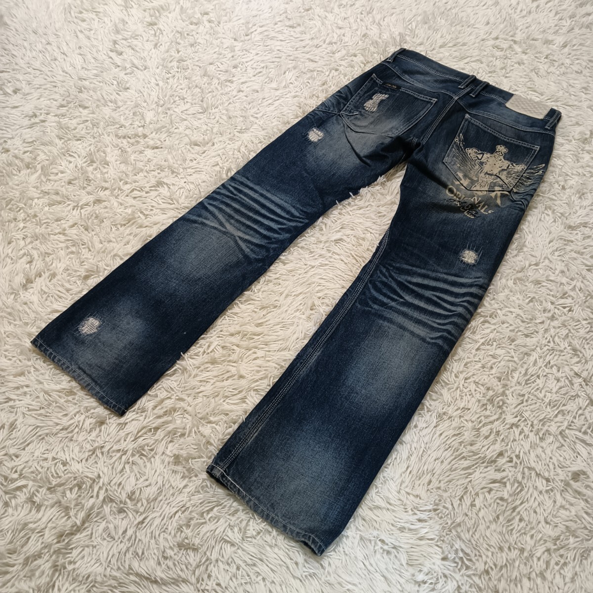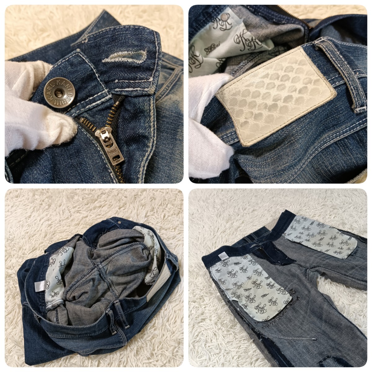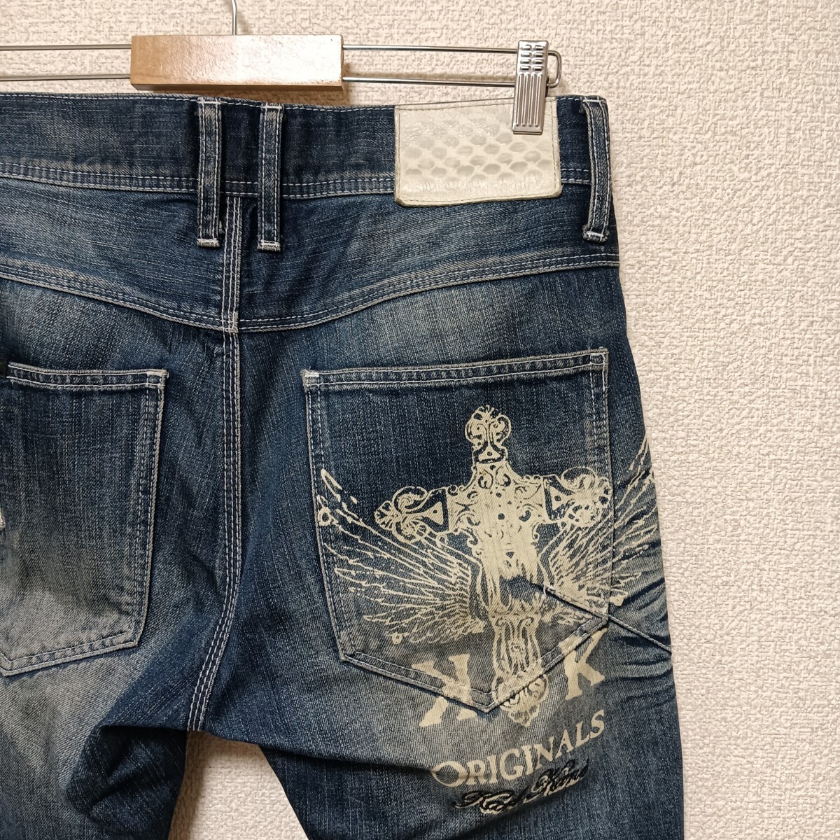 ★KARL KANI 21K1710 デニムパンツ ジーンズ ジーパン プリント加工 ダメージ加工 リペア加工 ユーズド加工 ボトムス サイズ32 アーカイブ ヴィンテージ オールド カールカナイ Y2K 古着 USED